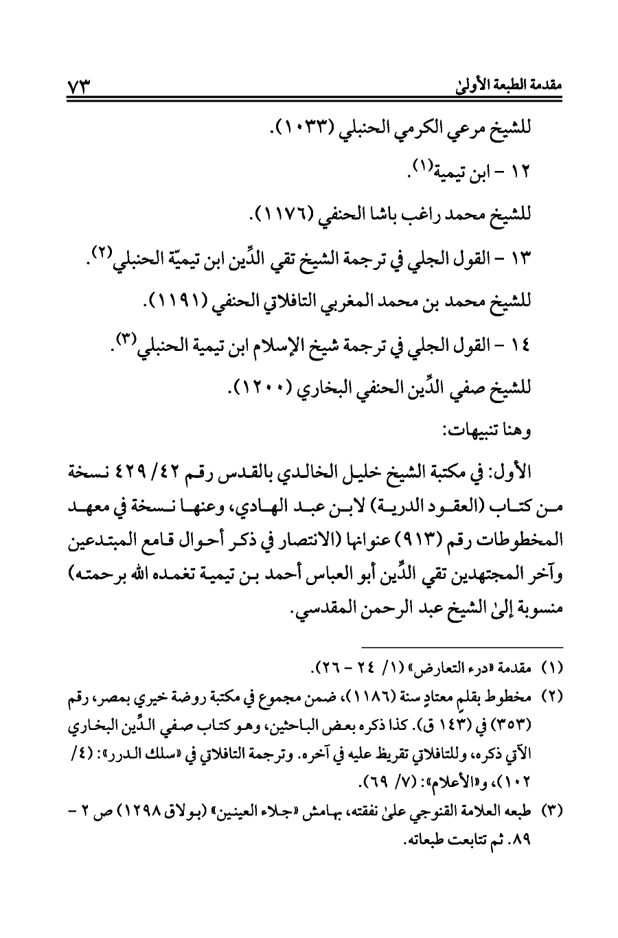 (¬١). مقدمة «درء التعارض» (١/ ٢٤ - ٢٦).