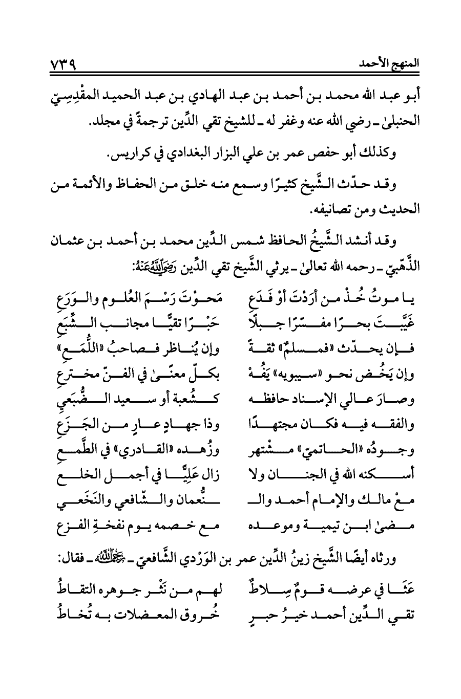 أبو عبد الله محمد بن أحمد بن عبد الهادي بن عبد الحميد المقْدِسِيّ الحنبلى ــ رضي الله عنه وغفر له ــ للشيخ تقي الدِّين ترجمةً في مجلد.