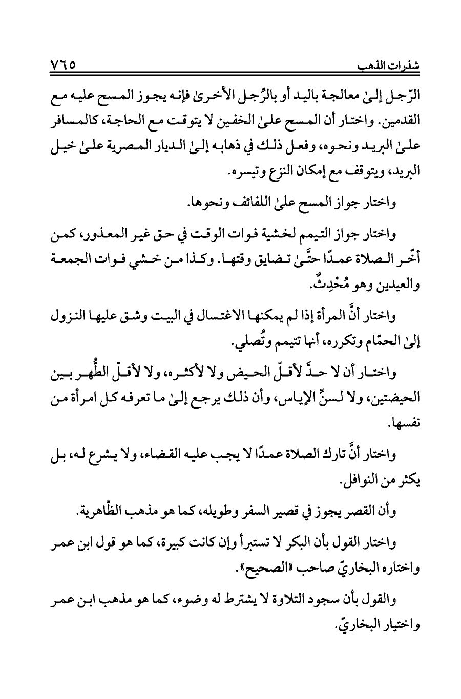 واختار جواز التيمم لخشية فوات الوقت في حق غير المعذور، كمن أخّر الصلاة عمدًا حتَّى تضايق وقتها. وكذا من خشي فوات الجمعة والعيدين وهو مُحْدِثٌ.