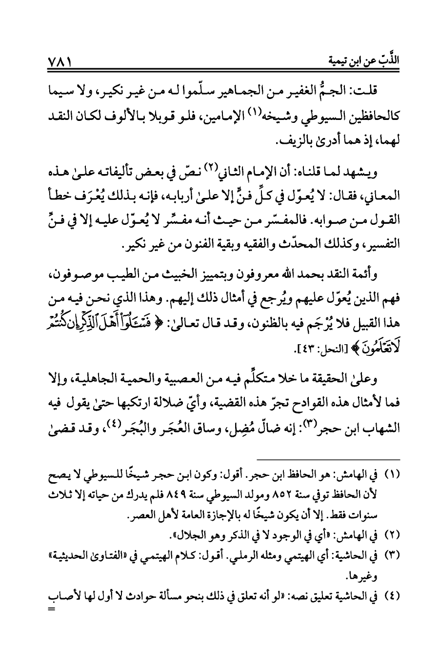 (¬٣) في الحاشية: أي الهيتمي ومثله الرملي. أقول: كلام الهيتمي في «الفتاوى الحديثية» وغيرها.