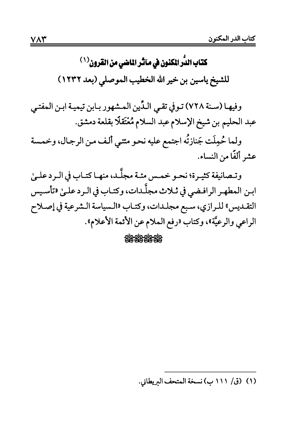 (¬١) (ق/ ١١١ ب) نسخة المتحف البريطاني.