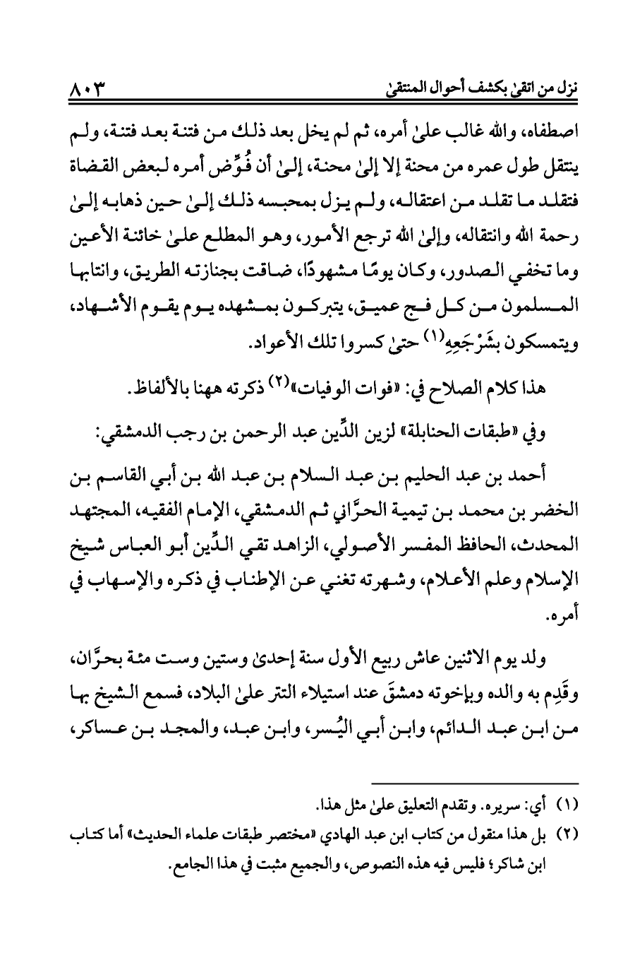 وفي «طبقات الحنابلة» لزين الدِّين عبد الرحمن بن رجب الدمشقي:
