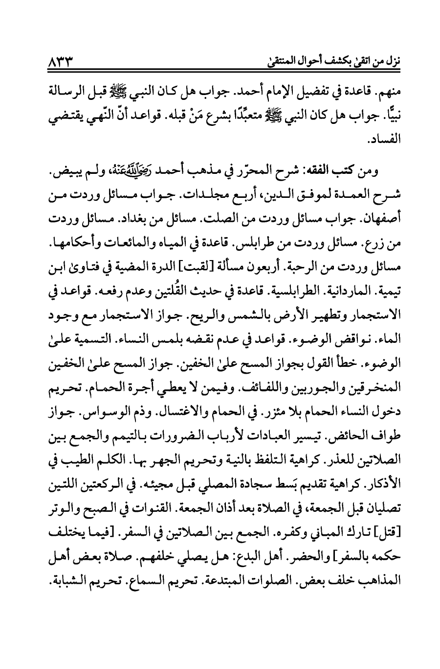 منهم. قاعدة في تفضيل الإمام أحمد. جواب هل كان النبي - صلى الله عليه وسلم - قبل الرسالة نبيًّا. جواب هل كان النبي - صلى الله عليه وسلم - متعبِّدًا بشرع مَنْ قبله. قواعد أنّ النّهي يقتضي الفساد.