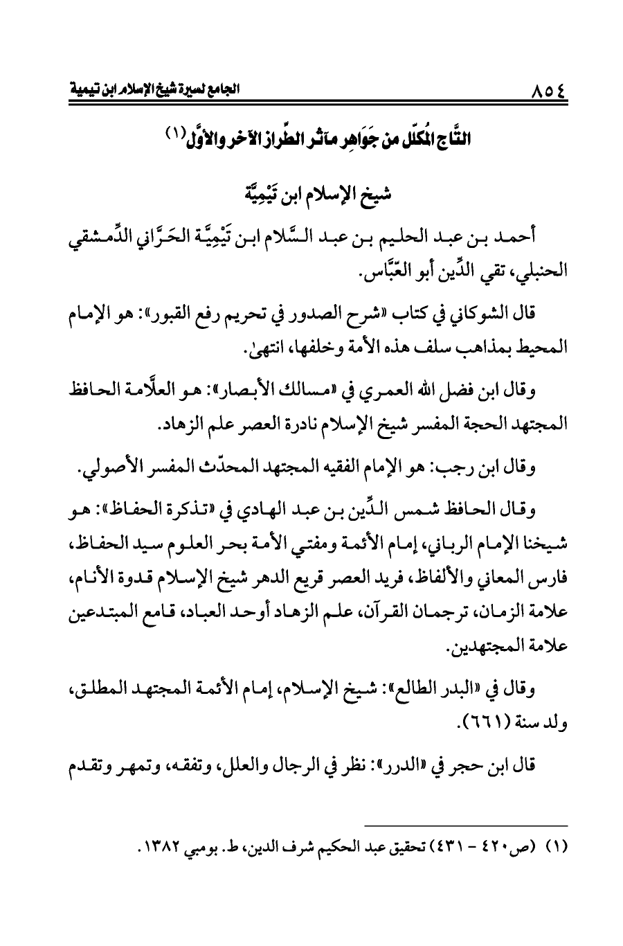 كتاب الجامع لسيرة شيخ الإسلام ابن تيمية خلال سبعة قرون وتكملة الجامع