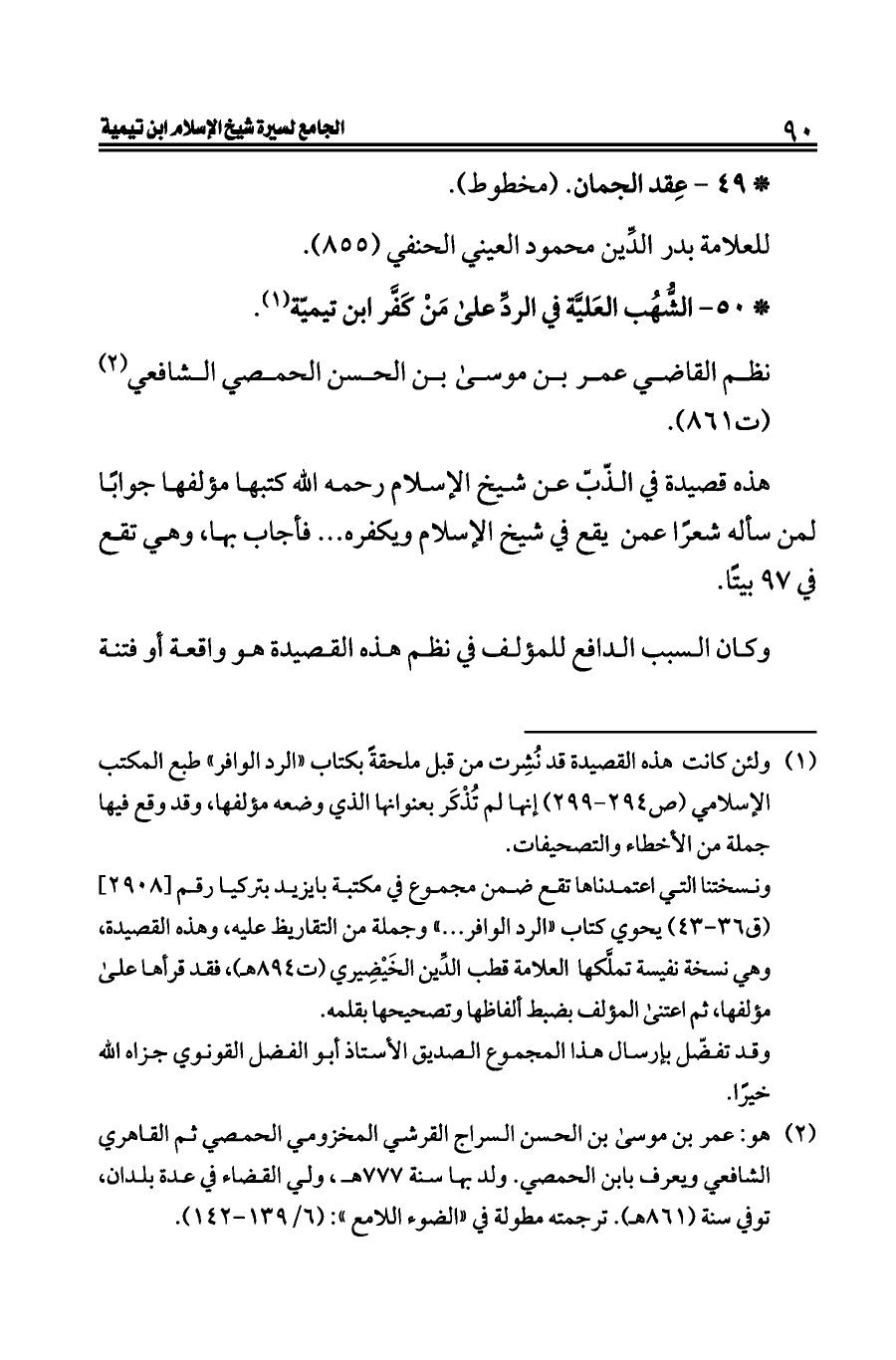 * ٥٠ - الشُّهُب العَليَّة في الردِّ على مَنْ كَفَّر ابن تيميّة (¬١).