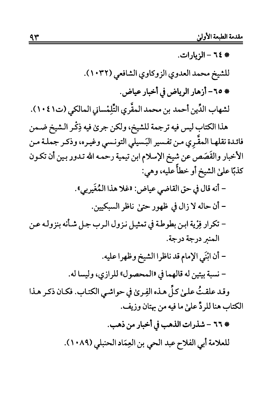 * ٦٥ - أزهار الرياض في أخبار عياض.