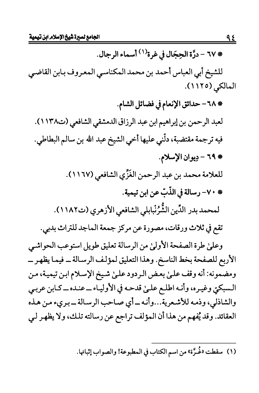 * ٧٠ - رسالة في الذّبّ عن ابن تيمية.