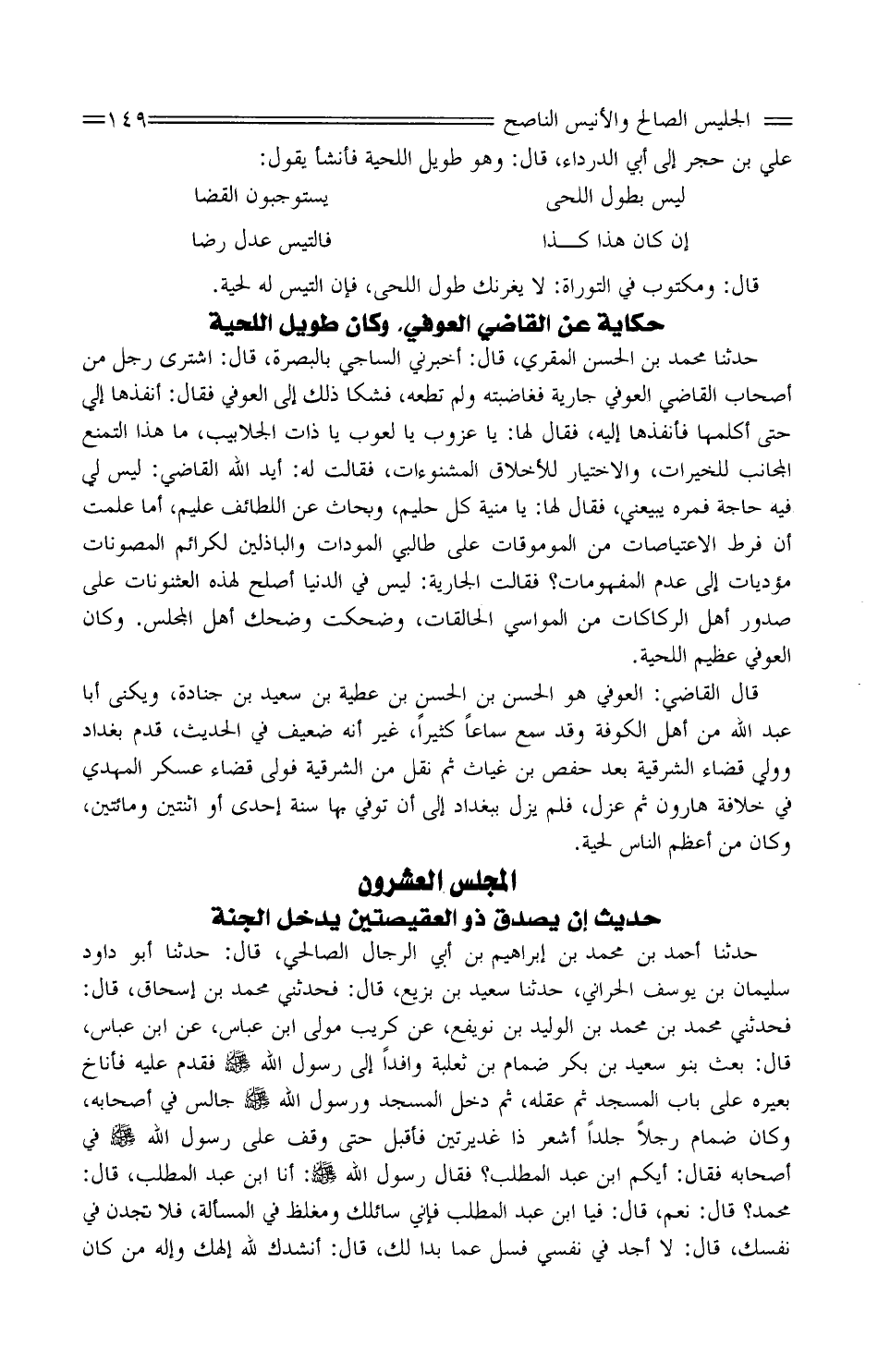 حِكَايَة عَنِ القَاضِي الْعَوْفِيّ، وَكَانَ طَوِيل اللِّحْيَة