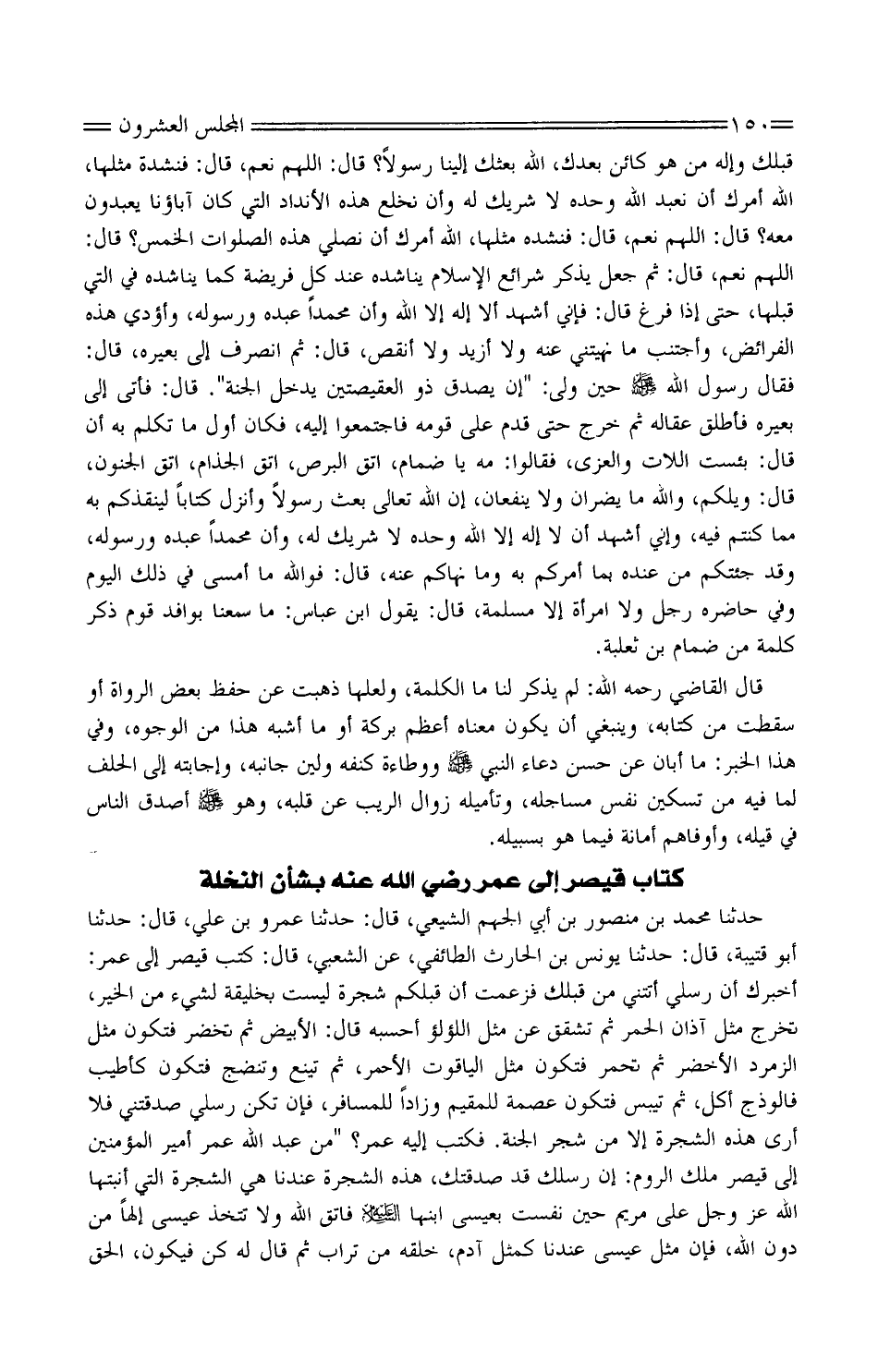كتاب قَيْصر إِلَى عُمَر رَضِيَ اللَّه عَنْهُ بشأن النَّخْلَة