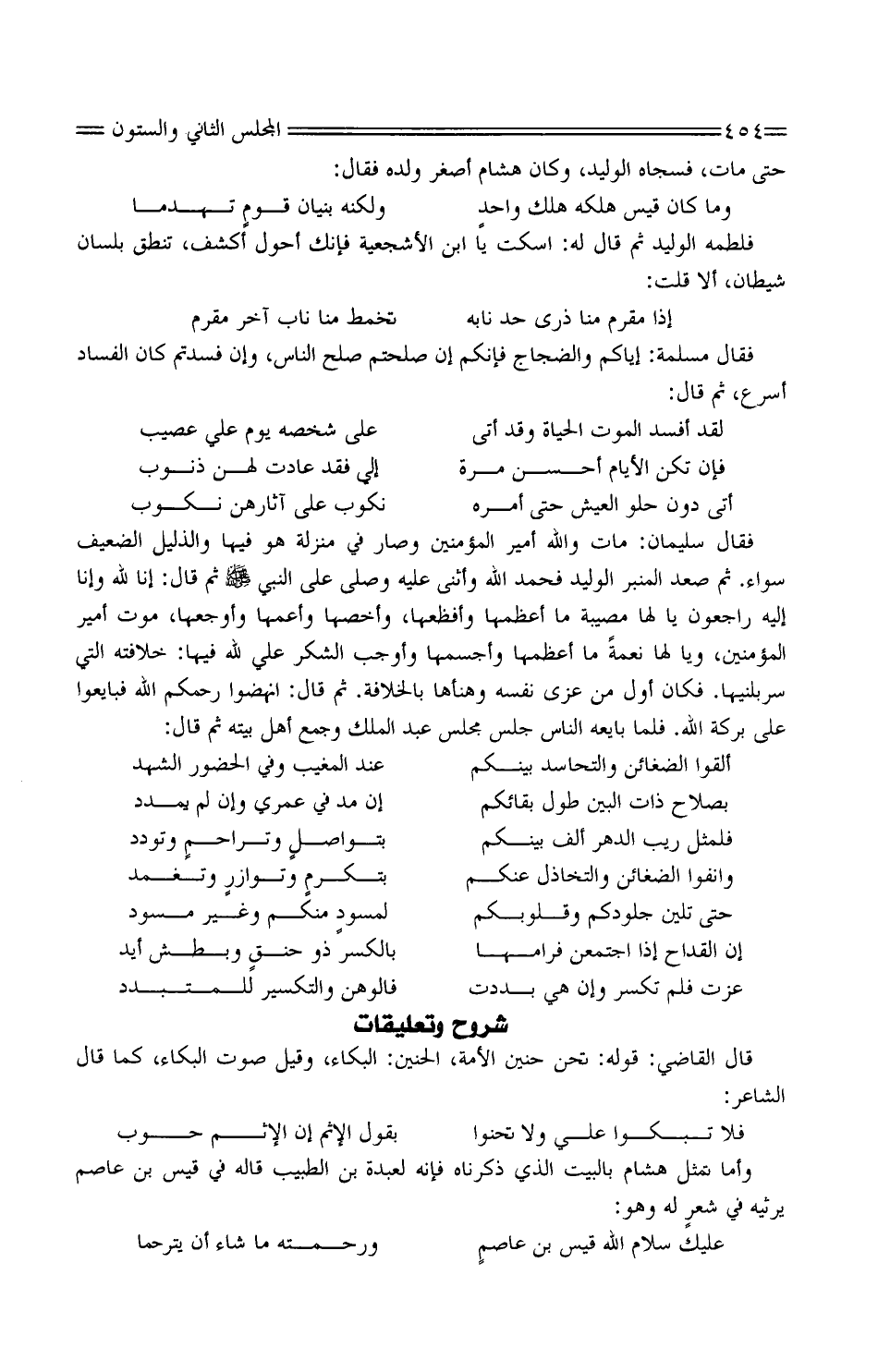 فَقَالَ مسلمة: إيَّاكُمْ والضجاج فَإِنَّكُم إِن صلحتم صلح النَّاس، وَإِن فسدتم كَانَ الْفساد أسْرع، ثُمَّ قَالَ: