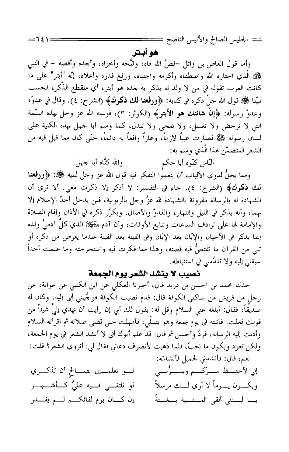 نصيب لَا ينشد الشّعْر يَوْم الْجُمُعَة