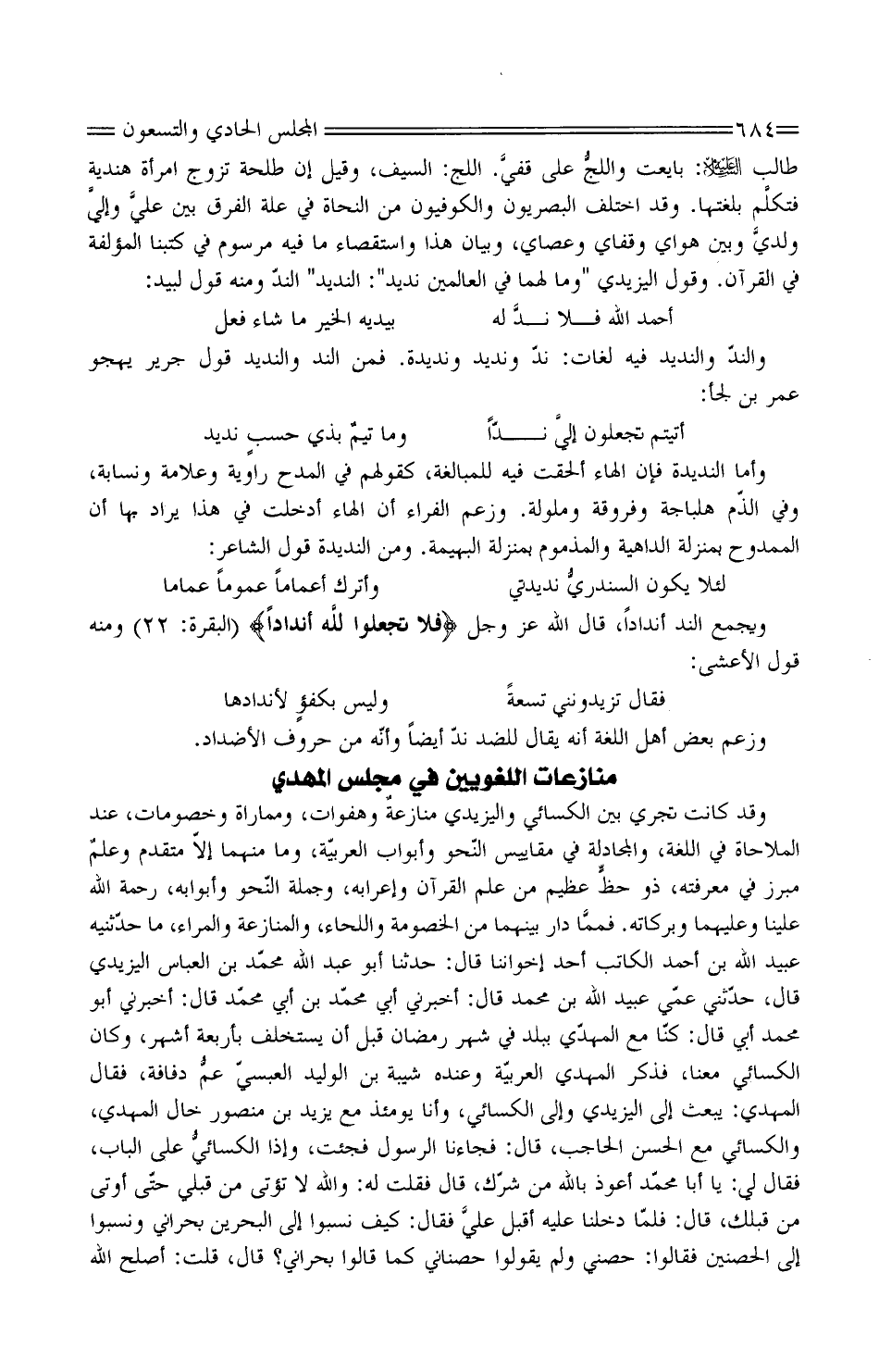 منازعات اللغويين فِي مجْلِس الْمهْدي