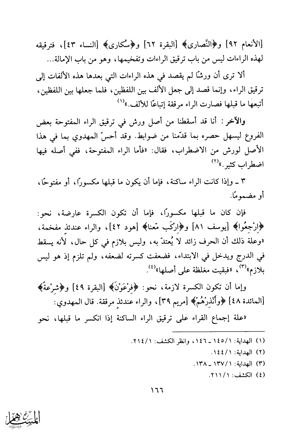 [الأنعام 92] والنَّصارى [البقرة 62] وسُكارى [النساء 43]، فترقيقه لهذه الراءات ليس من باب ترقيق الراءات وتفخيمها، وهو من باب الإمالة ...