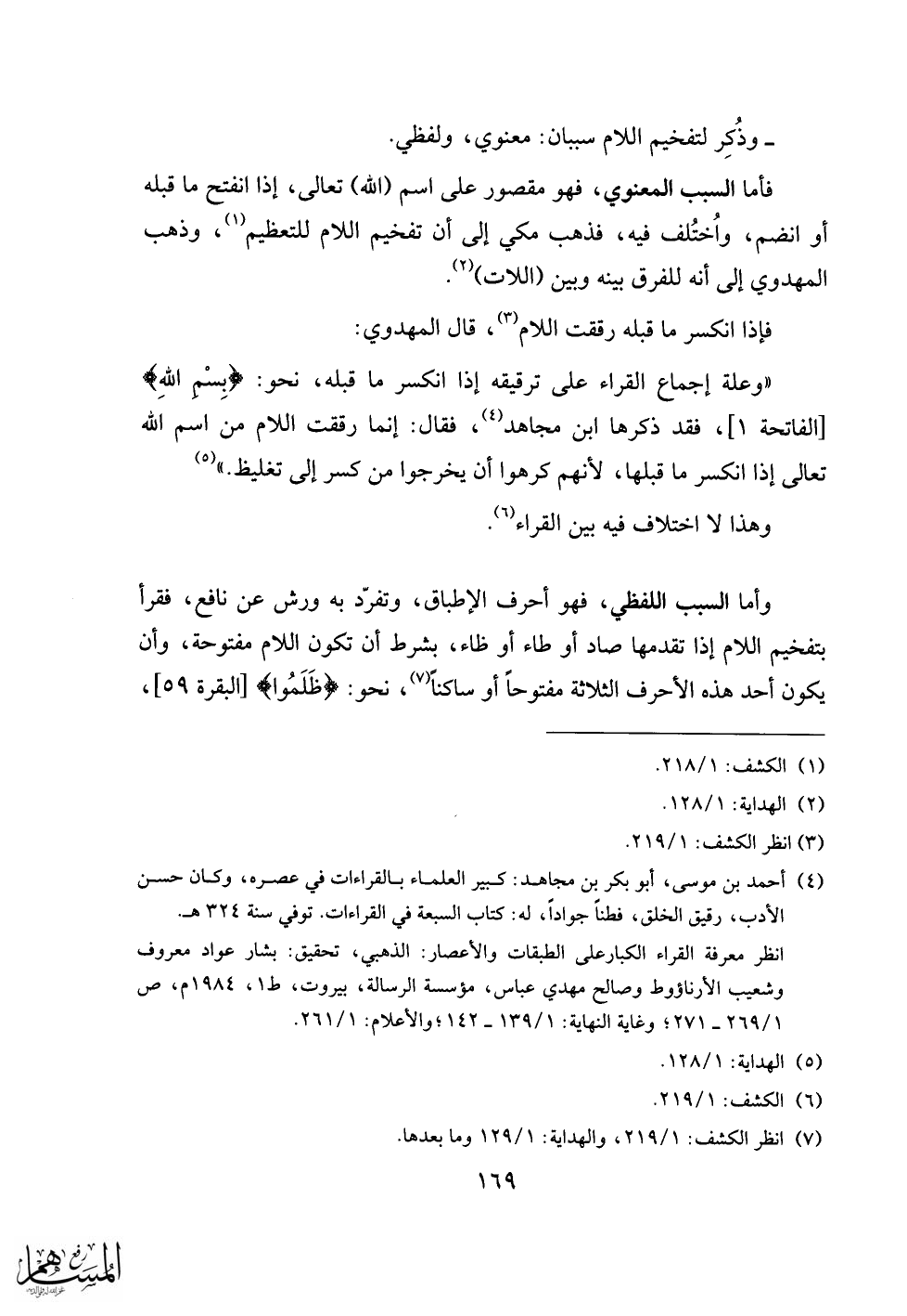 (7) انظر الكشف: 1/ 219، والهداية: 1/ 129 وما بعدها.