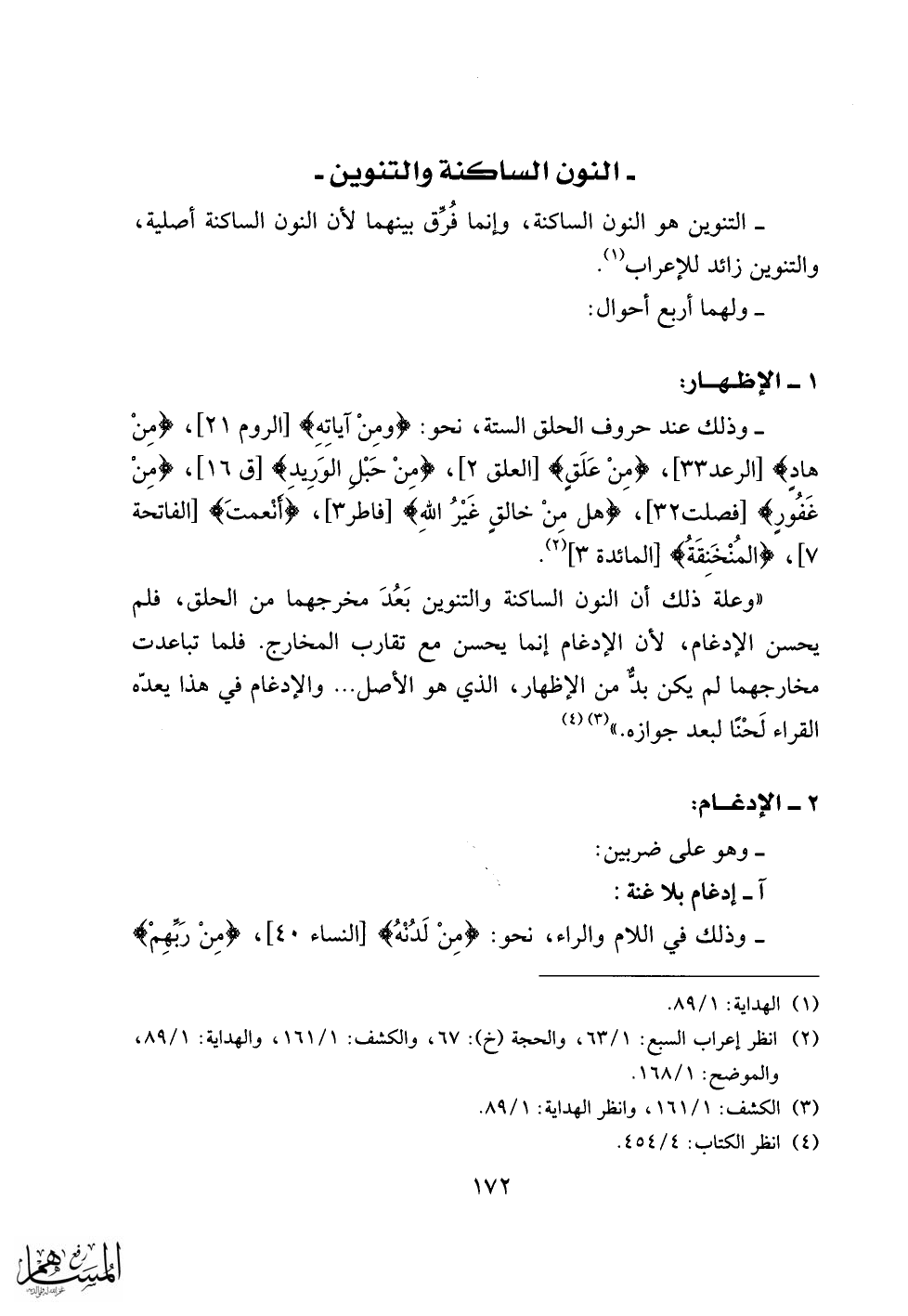 - التنوين هو النون الساكنة، وإنما فرّق بينهما لأن النون الساكنة أصلية، والتنوين زائد للإعراب «1».