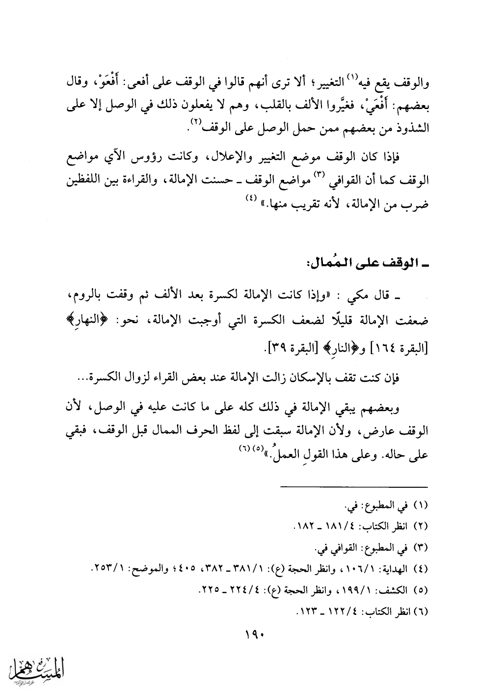 (4) الهداية: 1/ 106، وانظر الحجة (ع): 1/ 381 - 382، 405؛ والموضح: 1/ 253.
