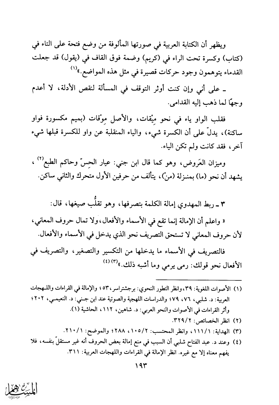 (1) الأصوات اللغوية: 39، وانظر التطور النحوي: برجشتراسر، 53؛ والإمالة في القراءات واللهجات العربية: د. شلبي، 76، 79؛ والدراسات اللهجية والصوتية عند ابن جني: د. النعيمي، 202؛ وأثر القراءات في الأصوات والنحو العربي: د. شاهين، 112، الحاشية (1).