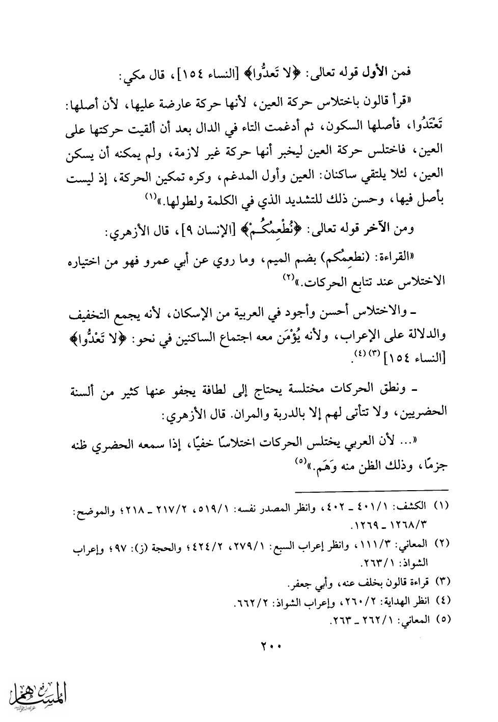 (1) الكشف: 1/ 401 - 402، وانظر المصدر نفسه: 1/ 519، 2/ 217 - 218؛ والموضح: