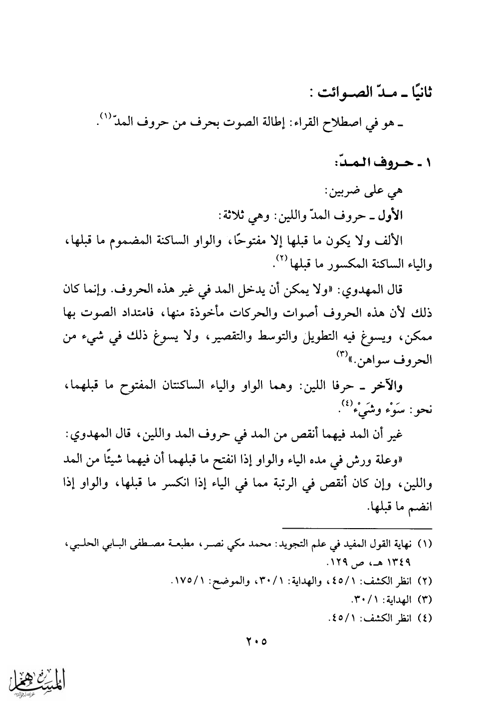 (1) نهاية القول المفيد في علم التجويد: محمد مكي نصر، مطبعة مصطفى البابي الحلبي، 1349 هـ، ص 129.