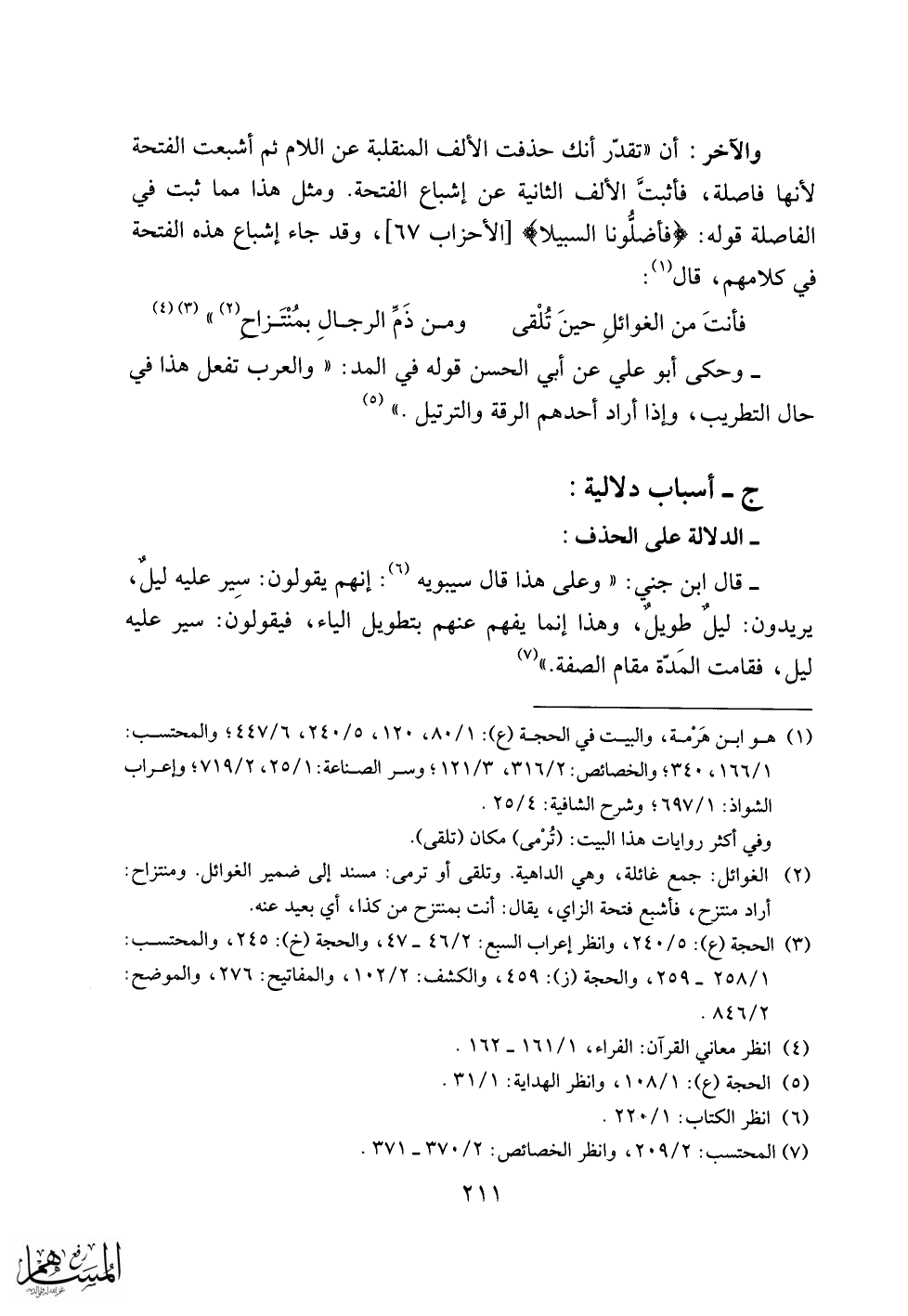(7) المحتسب: 2/ 209، وانظر الخصائص: 2/ 370 - 371.
