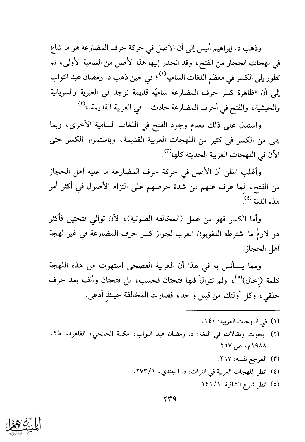 (2) بحوث ومقالات في اللغة: د. رمضان عبد التواب، مكتبة الخانجي، القاهرة، ط 2، 1988 م، ص 267.