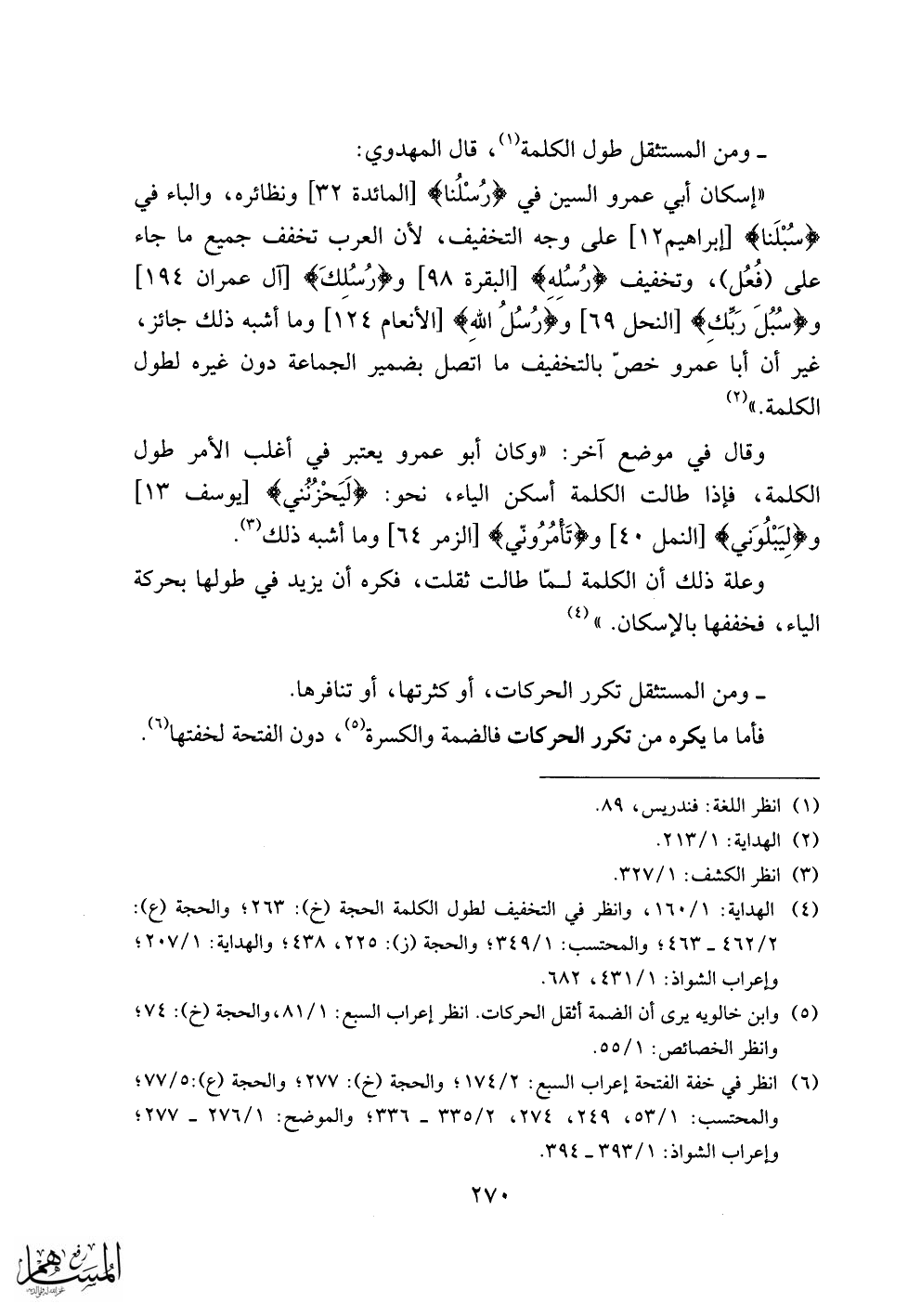 (4) الهداية: 1/ 160، وانظر في التخفيف لطول الكلمة الحجة (خ): 263؛ والحجة (ع):