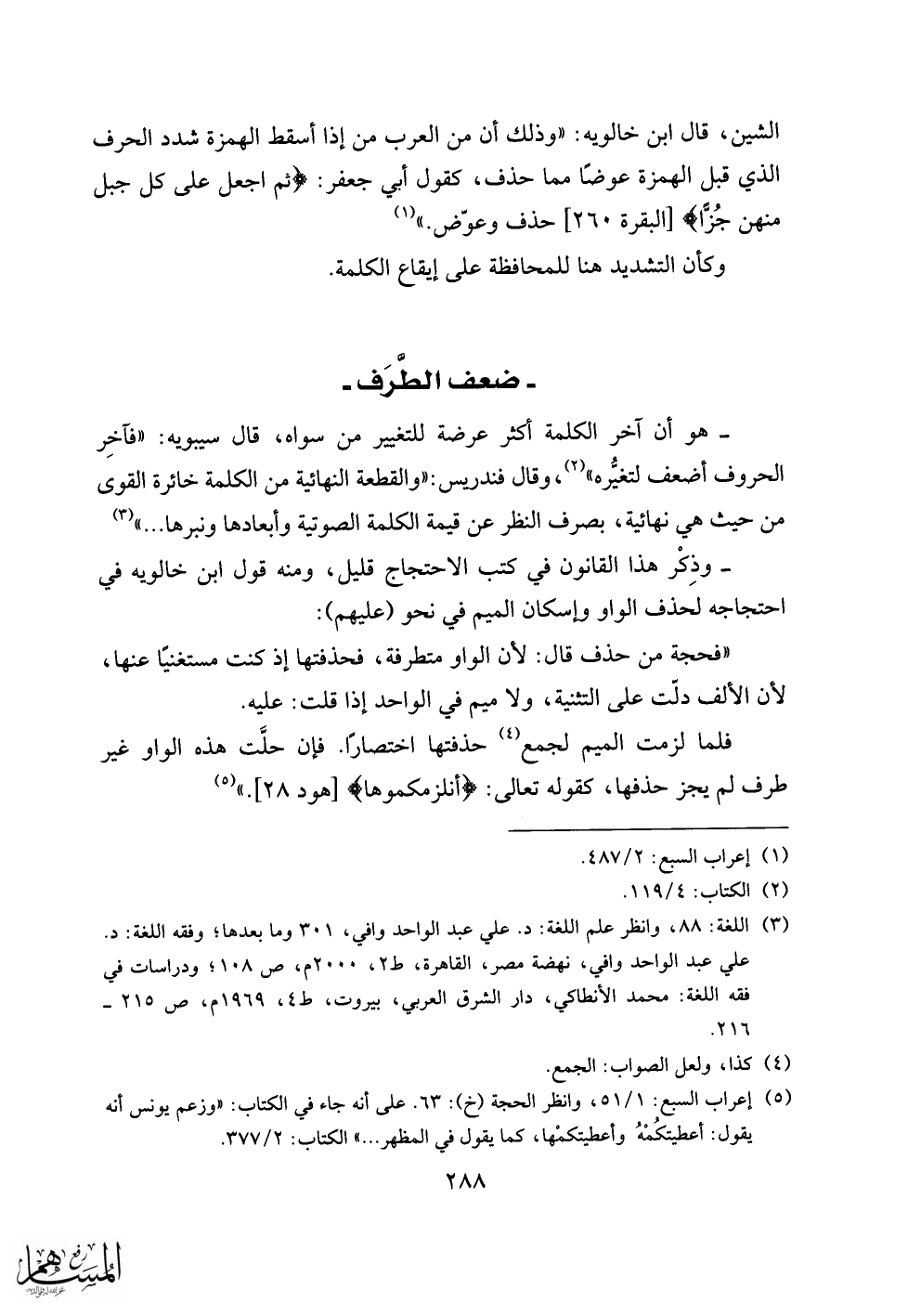 علي عبد الواحد وافي، نهضة مصر، القاهرة، ط 2، 2000 م، ص 108؛ ودراسات في فقه اللغة: محمد الأنطاكي، دار الشرق العربي، بيروت، ط 4، 1969 م، ص 215 - 216.