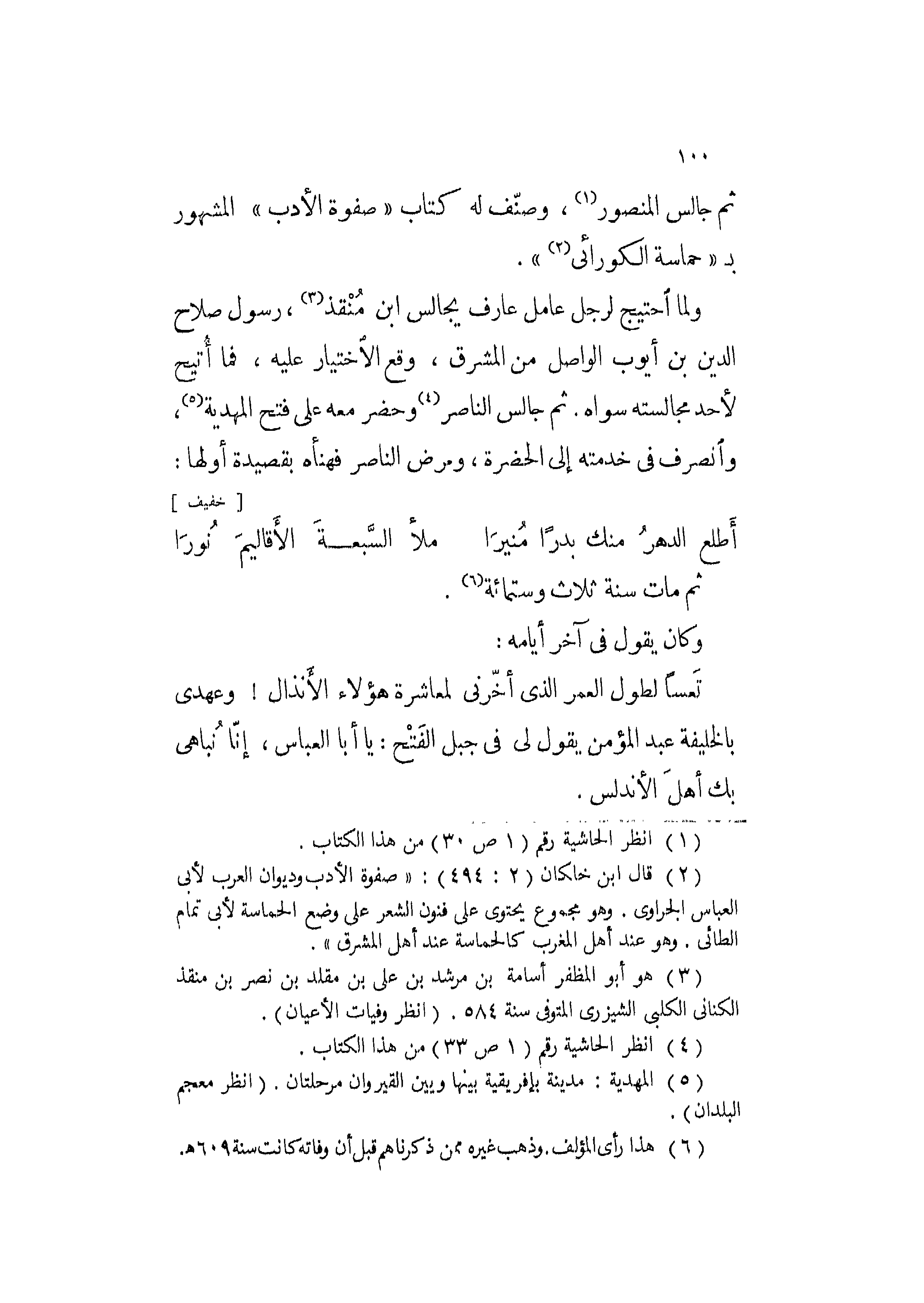 ثم جالس المنصور، وصنف له كتاب "صفوة الأدب" المشهور ب "حماسة الكورائي".