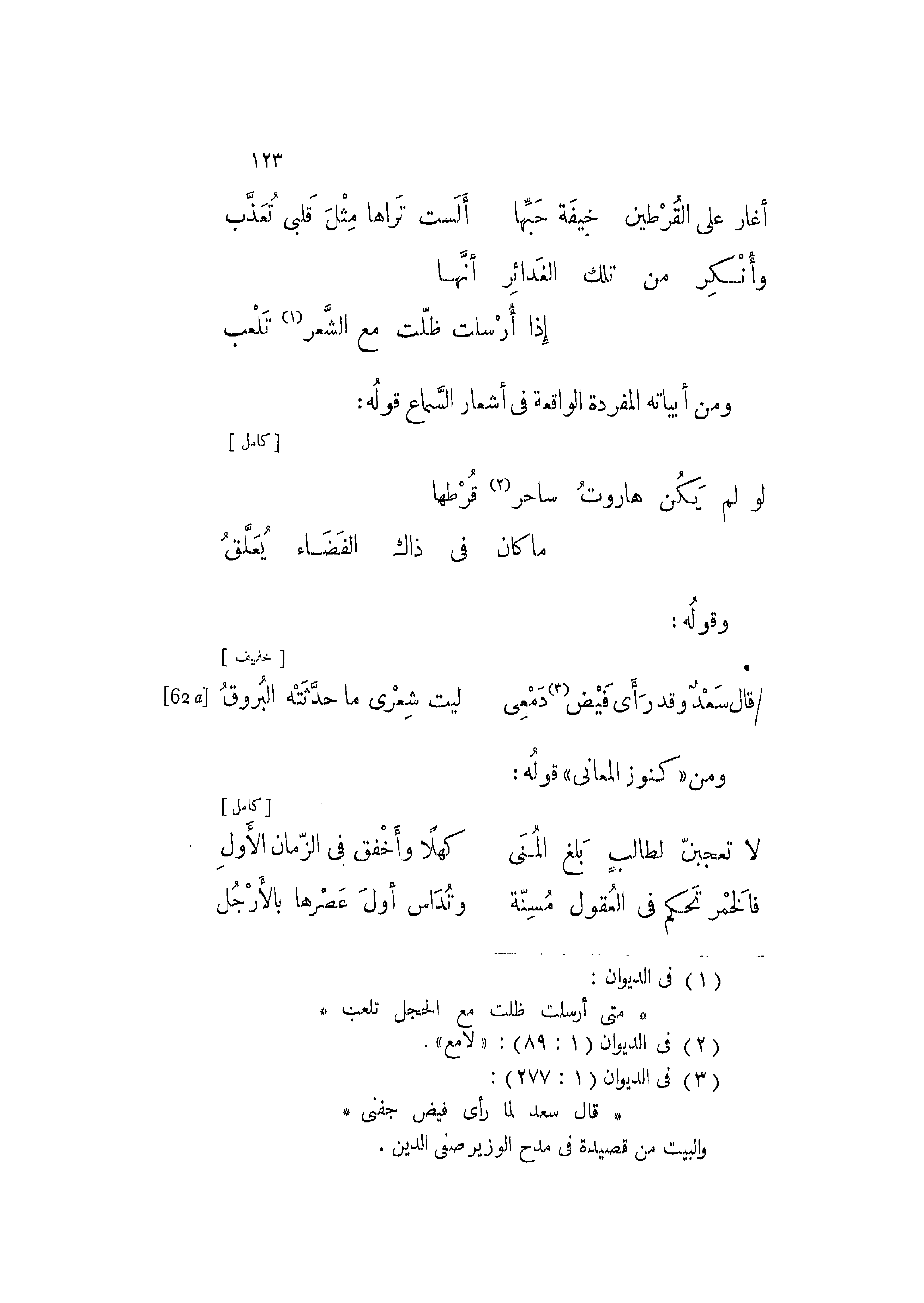 قال سعدٌ وقد رأى فيض دمعي ... ليت شعري ما حدثته البروق.