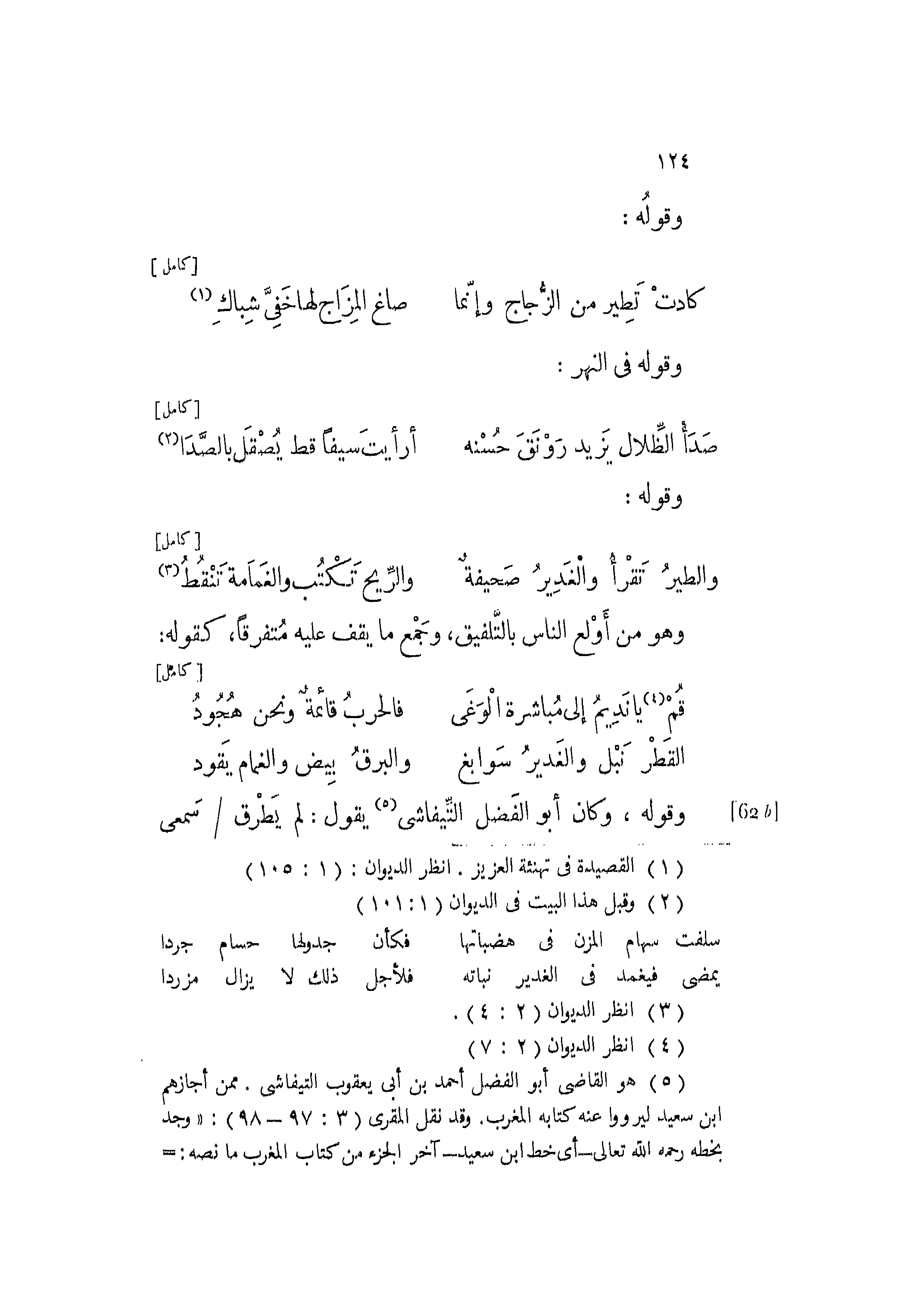 وقوله، وكان أبو الفضل التيفاشي يقول: لم يطرق سمعي
