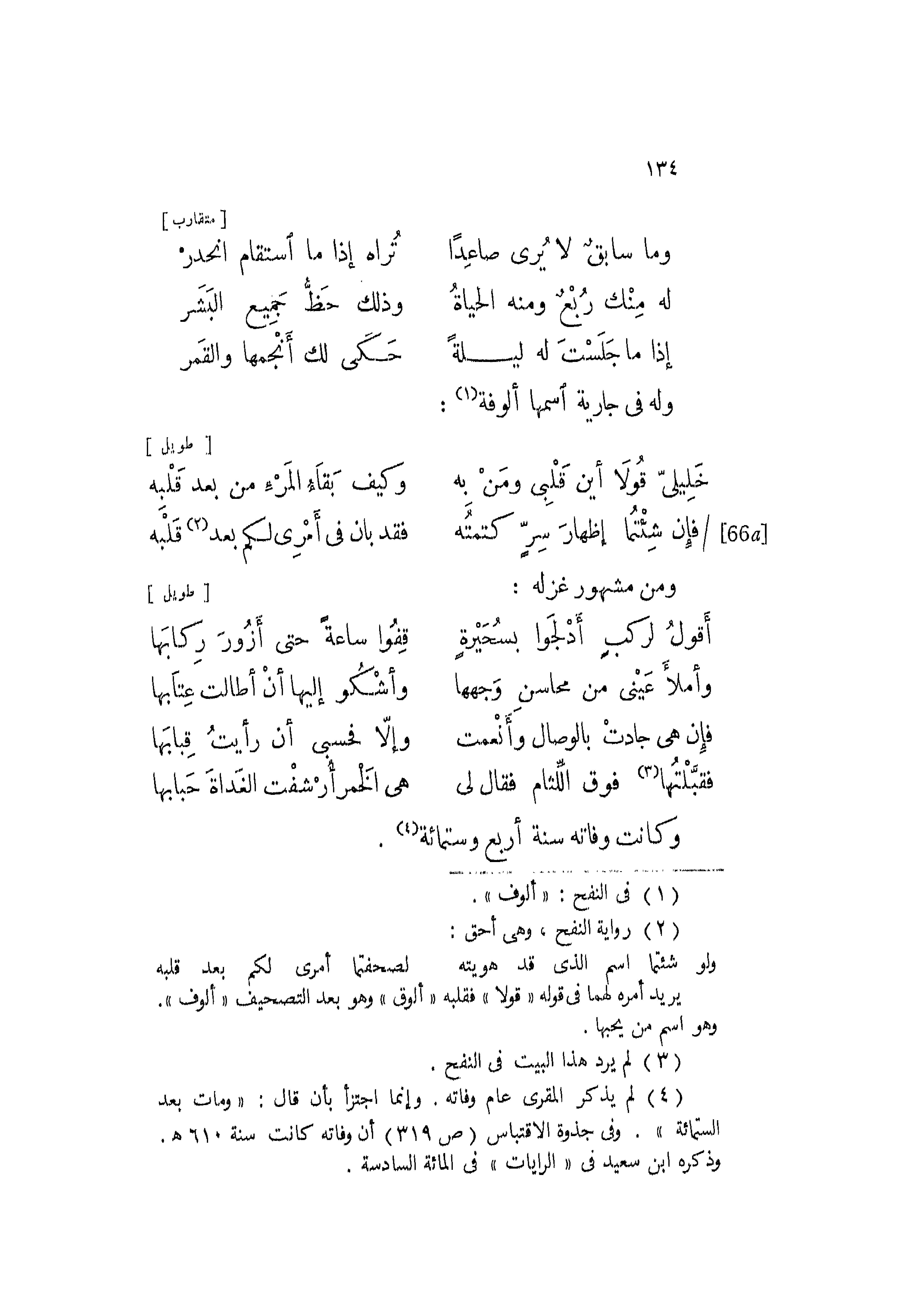 خليلي قولا أين قلبي ومن به ... وكيف بقاء المرء من بعد قلبه