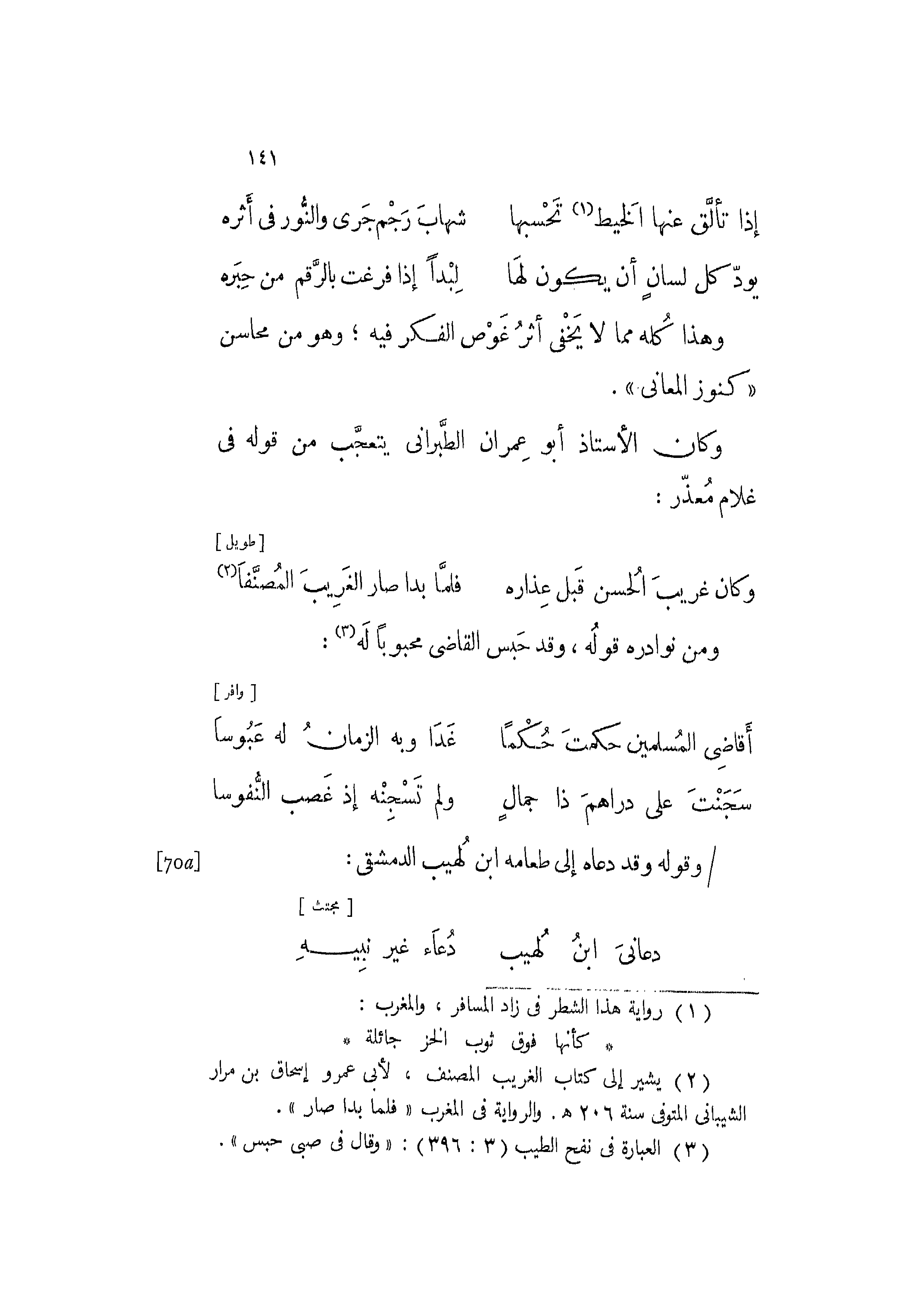 وكان الأستاذ أبو عمران الطبراني يتعجب من قوله في غلام معذر: