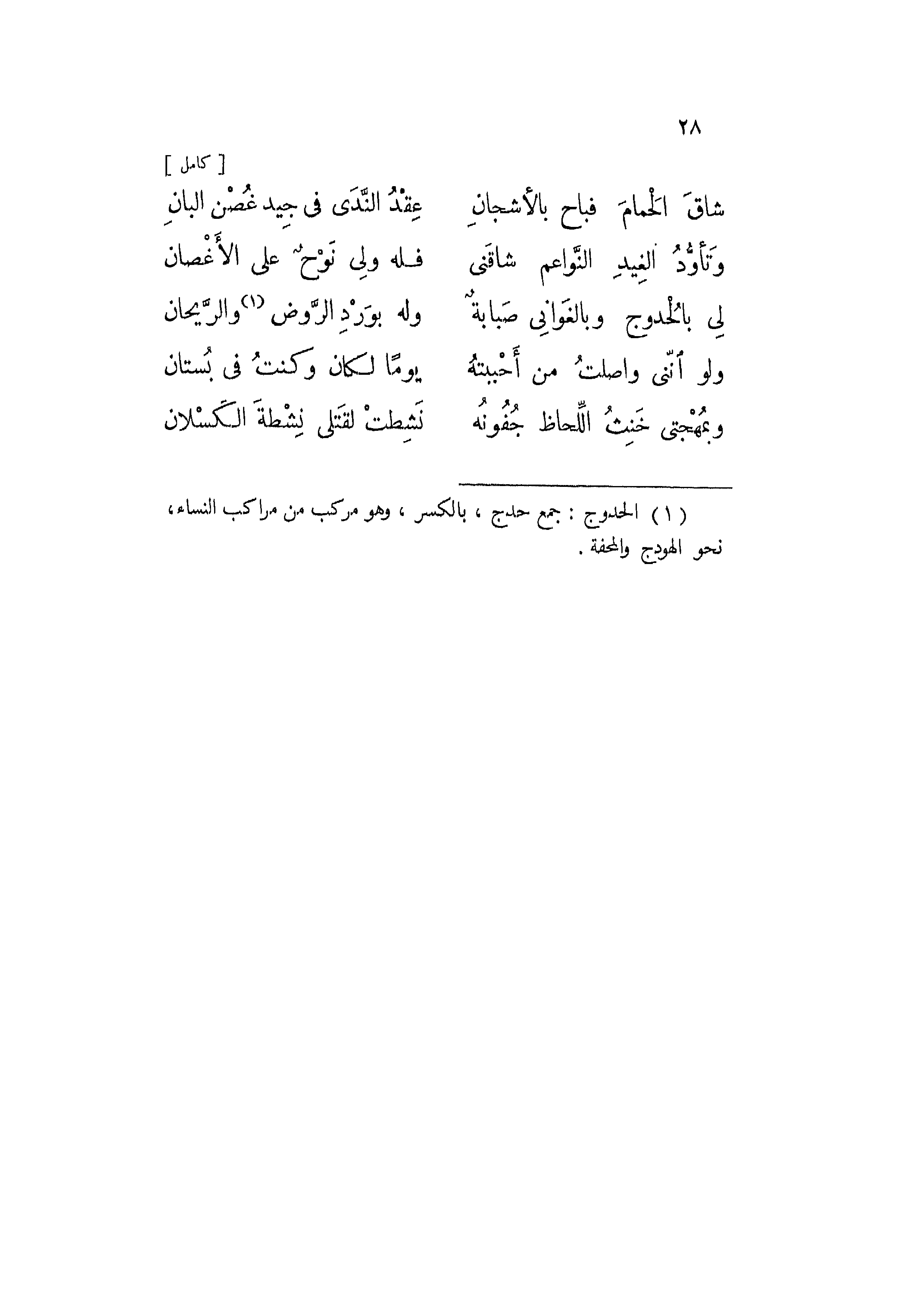 لي بالحدوج وبالغواني صبابةٌ ... وله بورد الروض والريحان