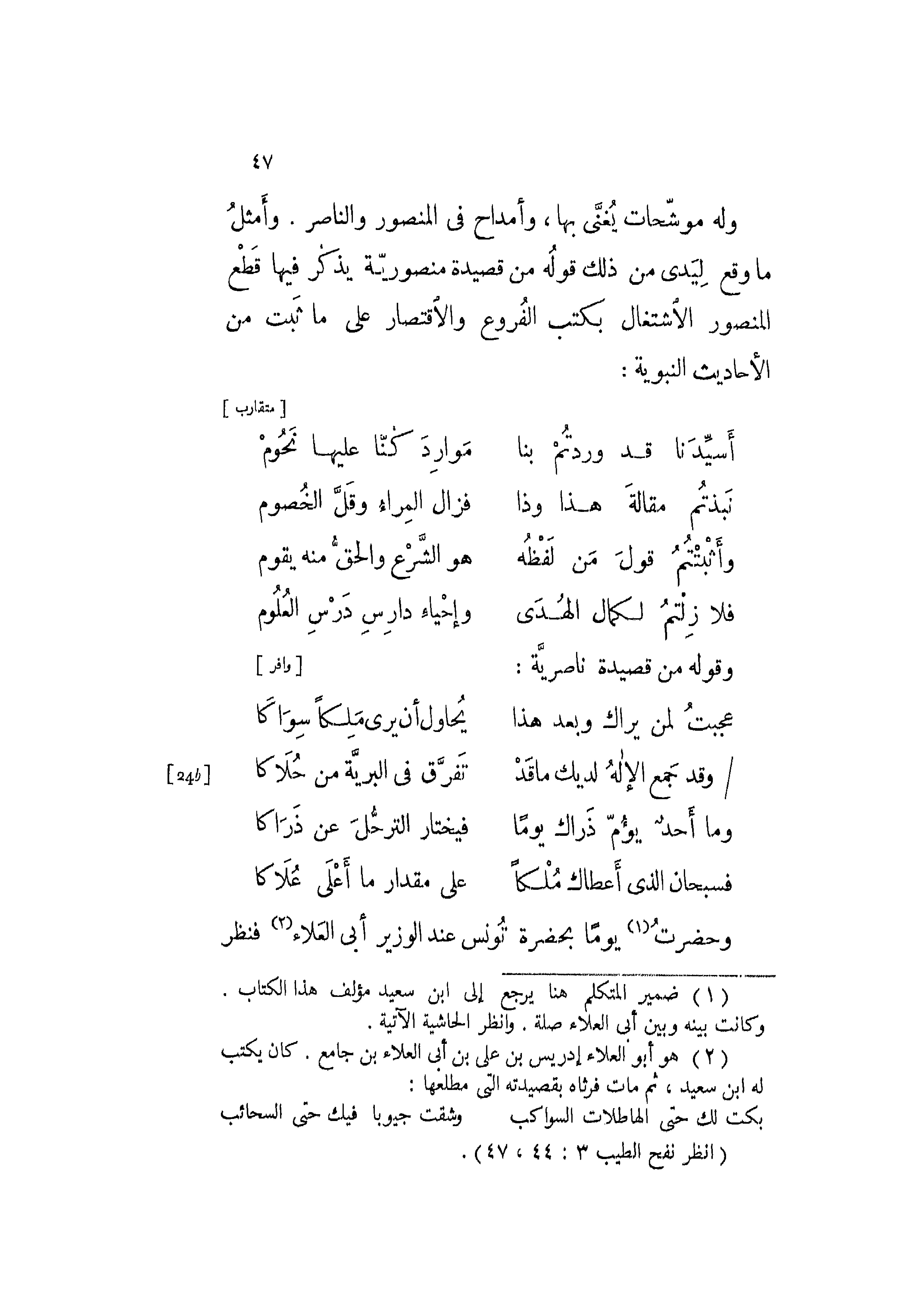 وحضرت يوماً بحضرة تونس عند الوزير أبي العلاء فنظر