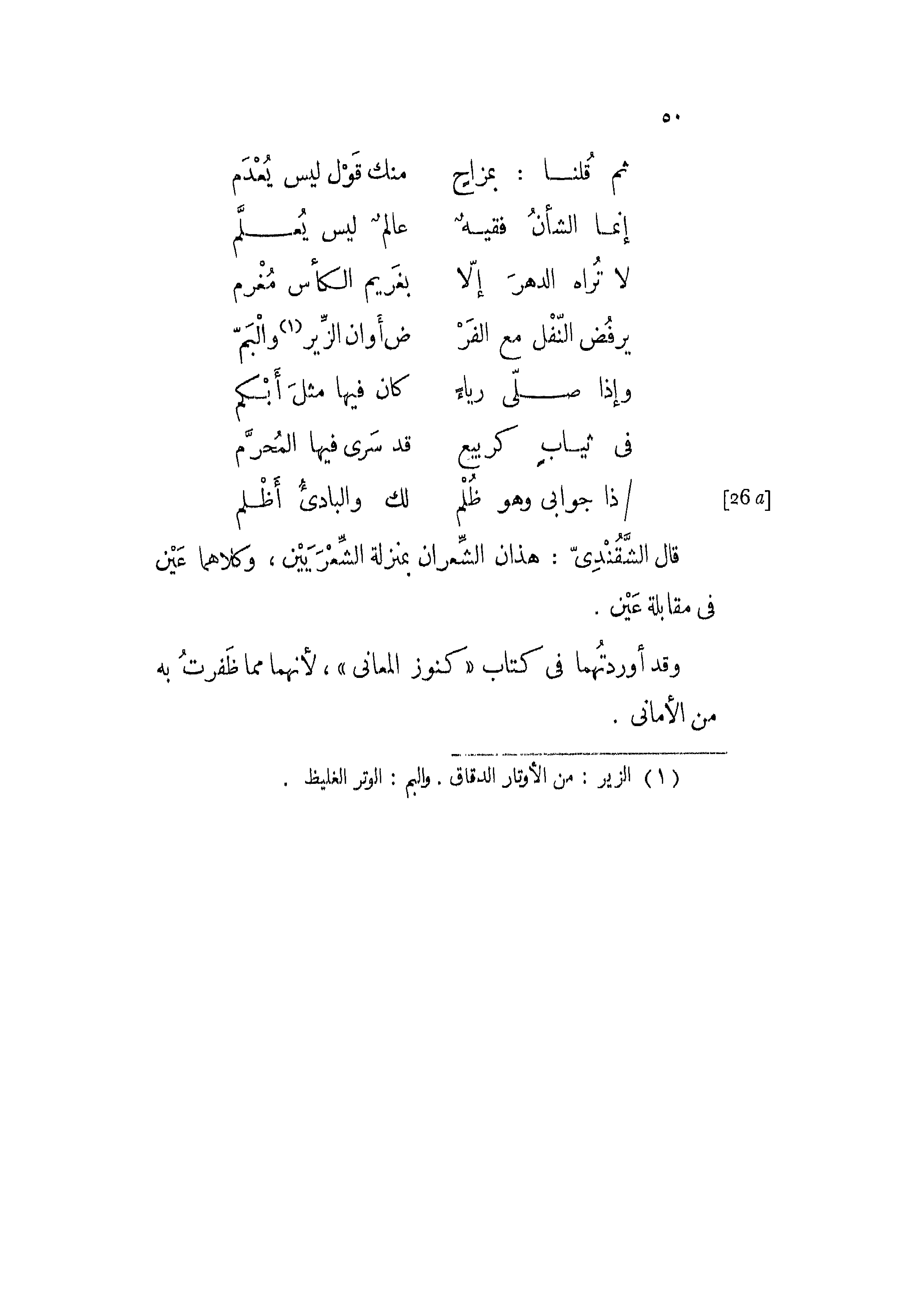 وقد أوردتهما في كتاب "كنوز المعاني"، لأنهما مما ظفرت منه الأماني.