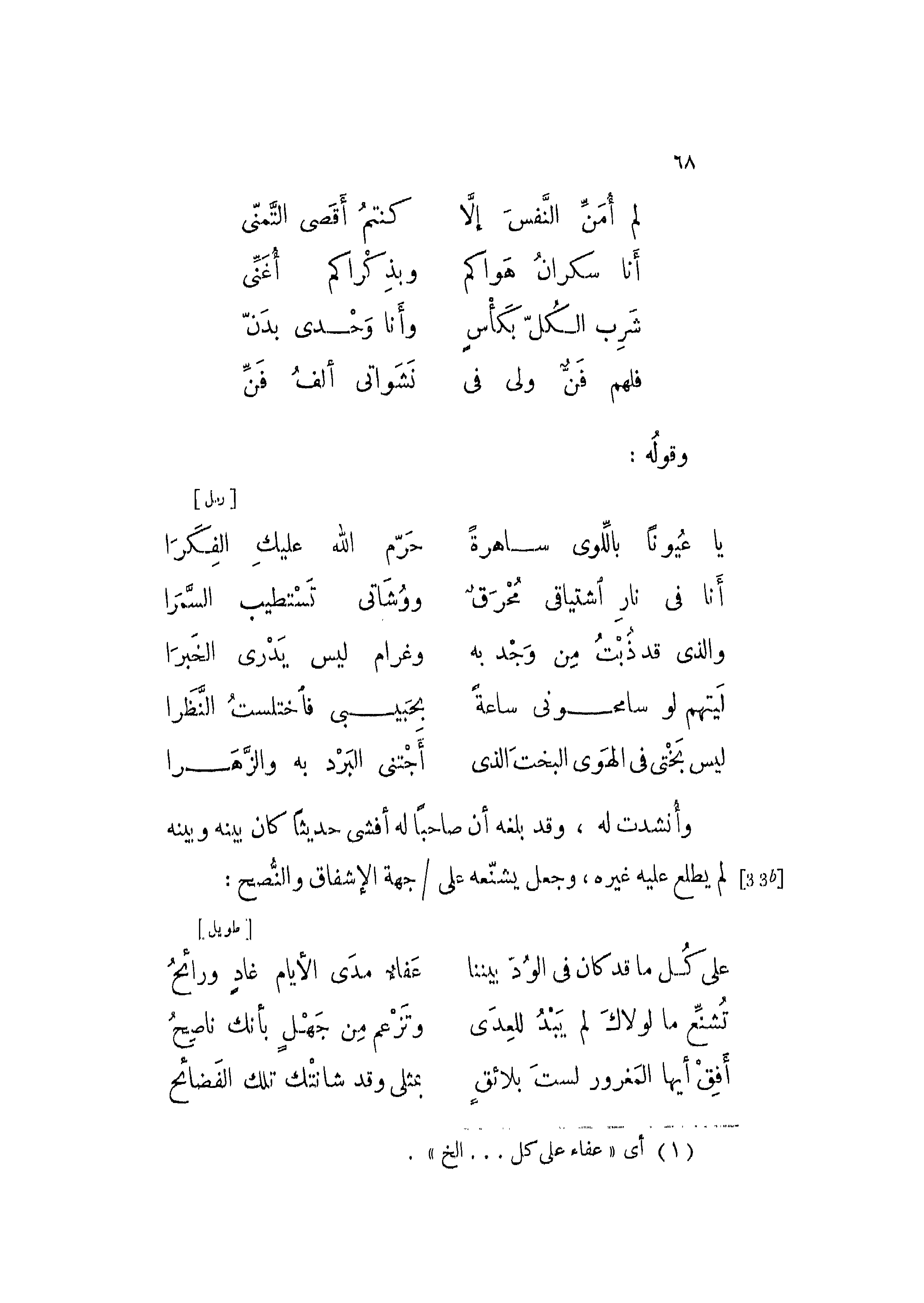 يا عيونا باللوى ساهرةً ... حرم الله عليك الفكرا