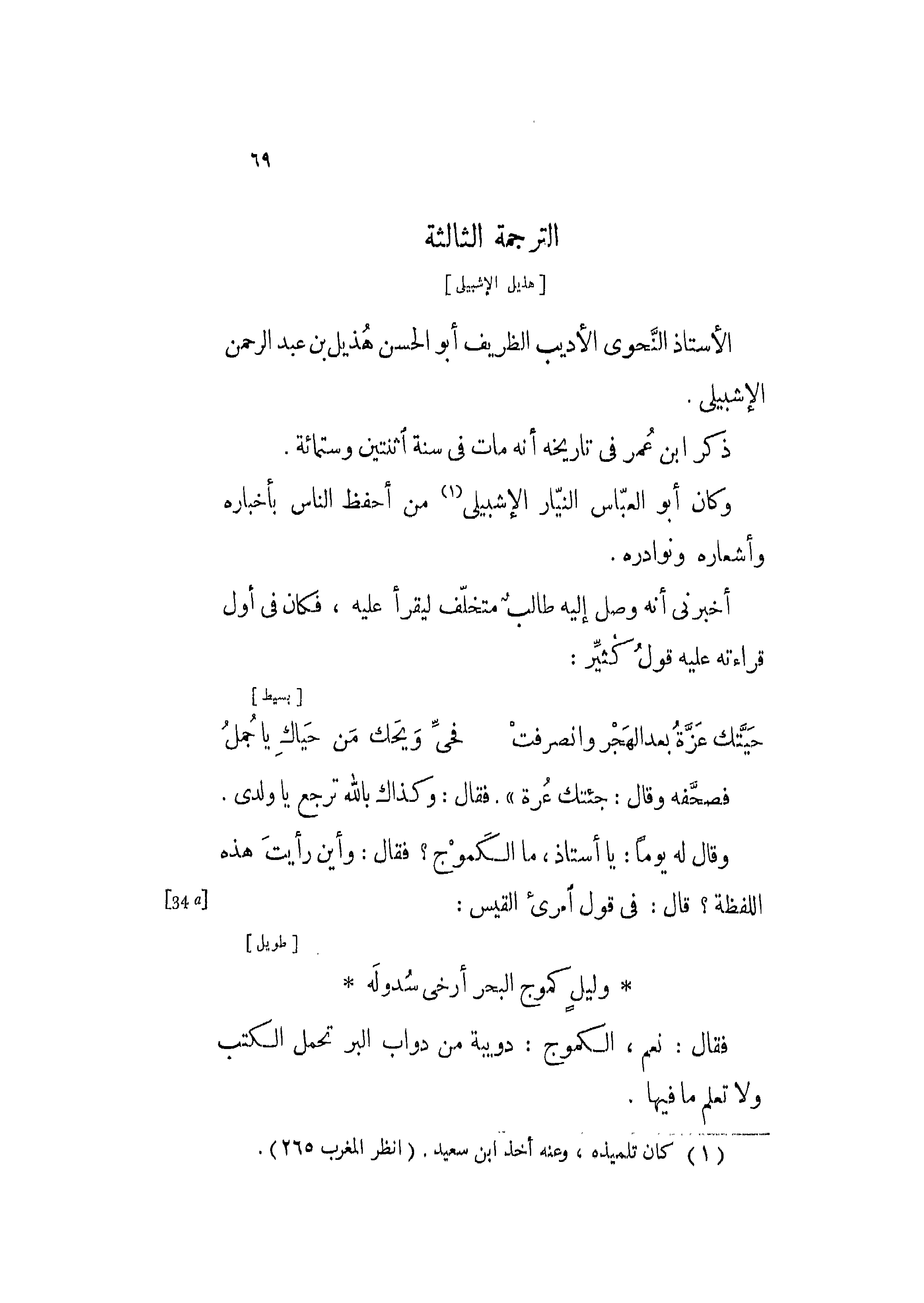 الأستاذ النحوي الأديب الظريف أبو الحسن هذيل بن عبد الرحمن الإشبيلي.