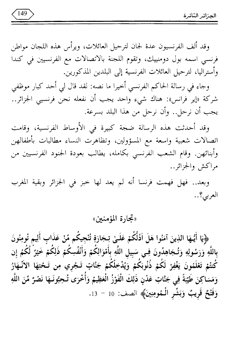 وجاء في رسالة الحاكم الفرنسي أخيرا ما نصه: لقد قال لي أحد كبار موظفي شركة "إير فرانس": هناك شيء واحد يجب أن نفعله نحن فرنسيي الجزائر .. يجب أن نرحل .. وأن نرحل من هذا البلد بسرعة.