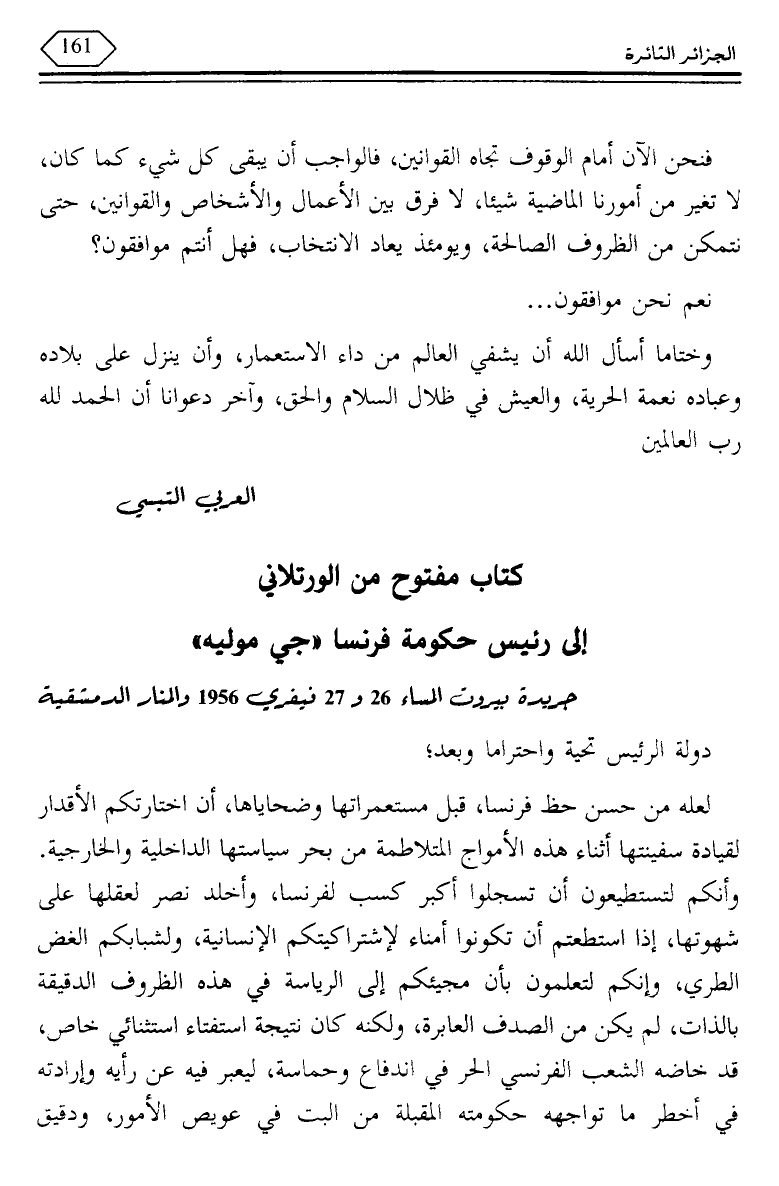 كتاب مفتوح من الورتلاني