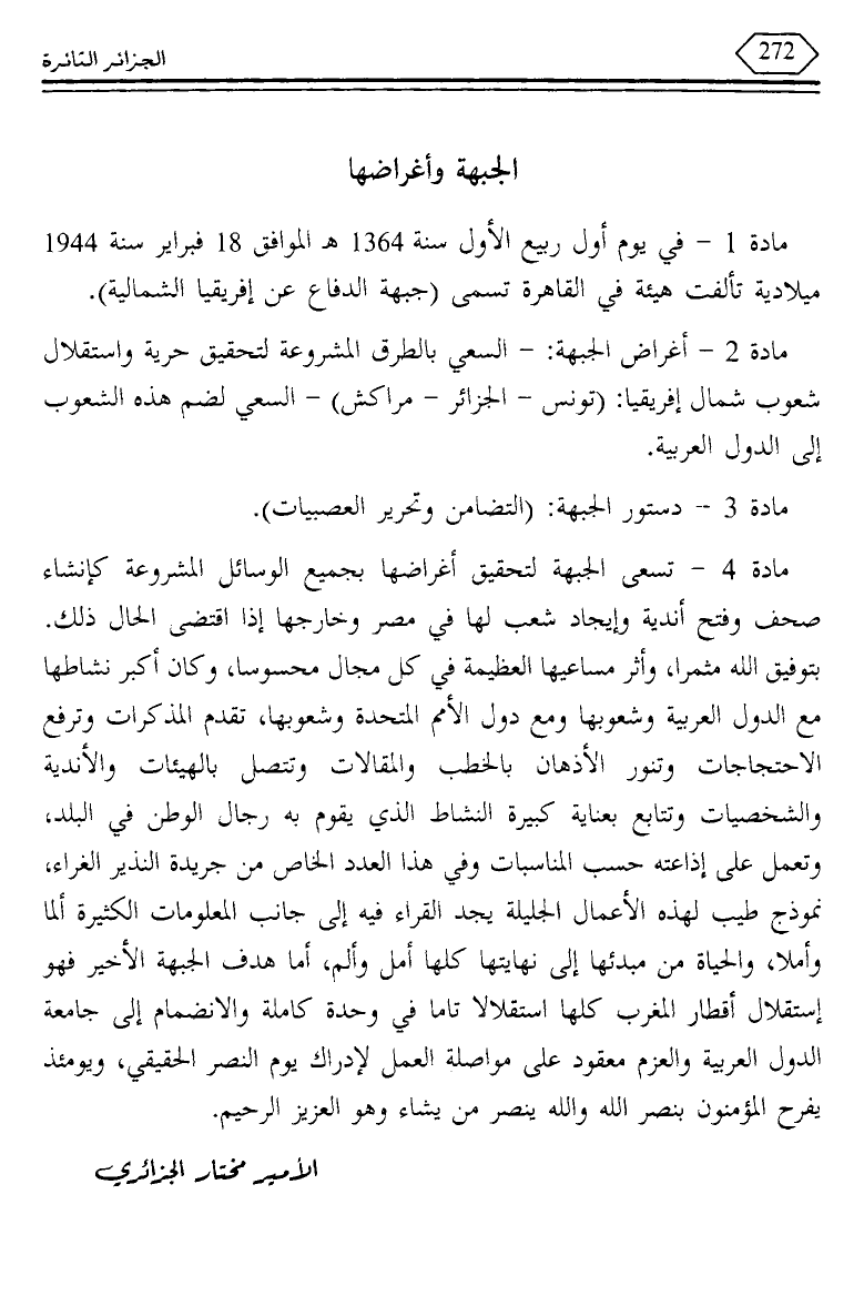 ميلادية تألفت هيئة في القاهرة تسمى (جبهة الدفاع عن إفريقيا الشمالية).