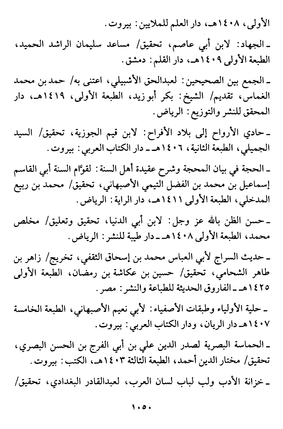 - الحجة في بيان المحجة وشرح عقيدة أهل السنة: لقوَّام السنة أبي القاسم إسماعيل بن محمد بن الفضل التيمي الأصبهاني، تحقيق/ محمد بن ربيع المدخلي، الطبعة الأولى ١٤١١ هـ، دار الراية: الرياض.