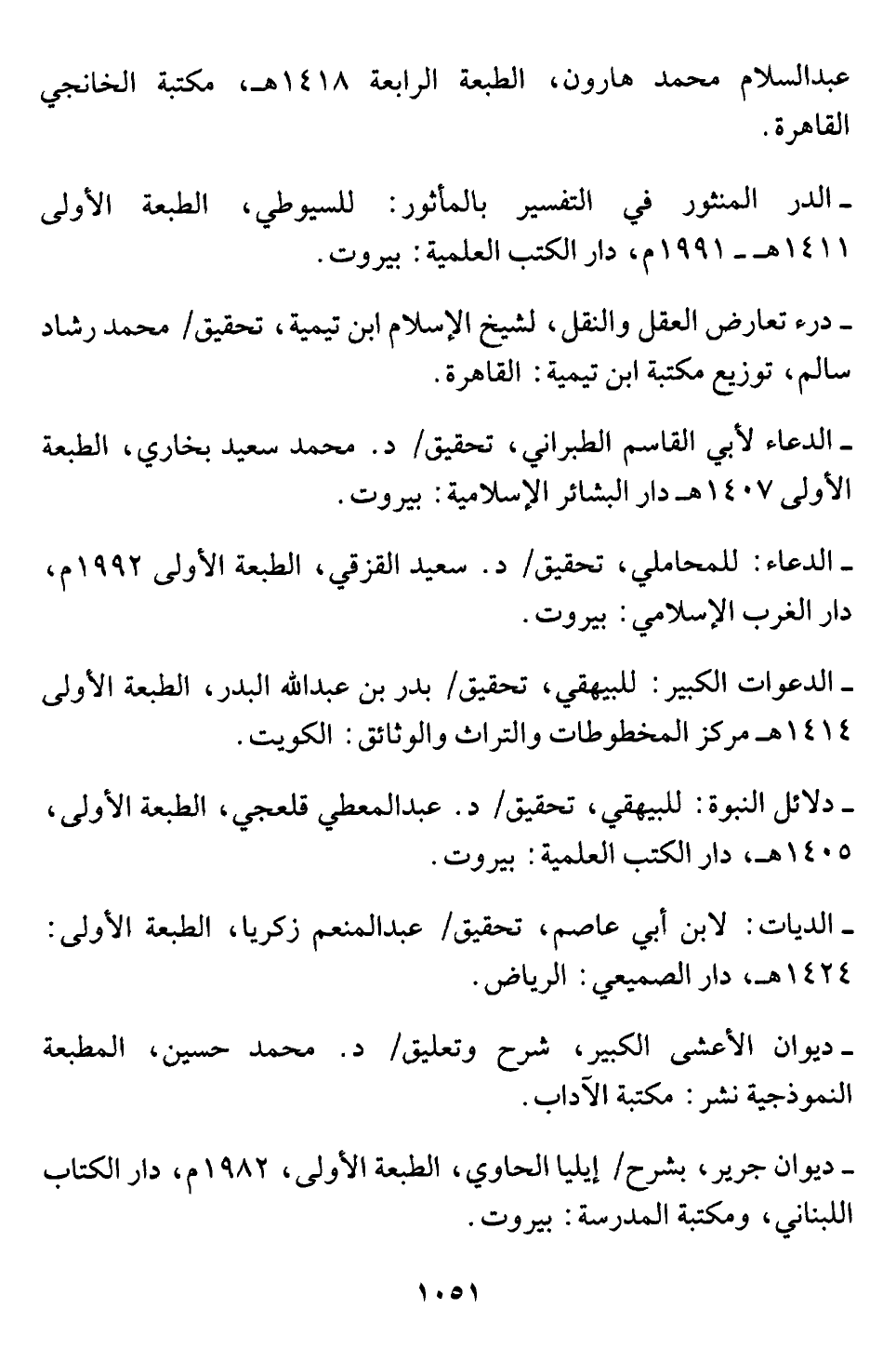 - درء تعارض العقل والنقل، لشيخ الإسلام ابن تيمية، تحقيق/ محمد رشاد سالم، توزيع مكتبة ابن تيمية: القاهرة.