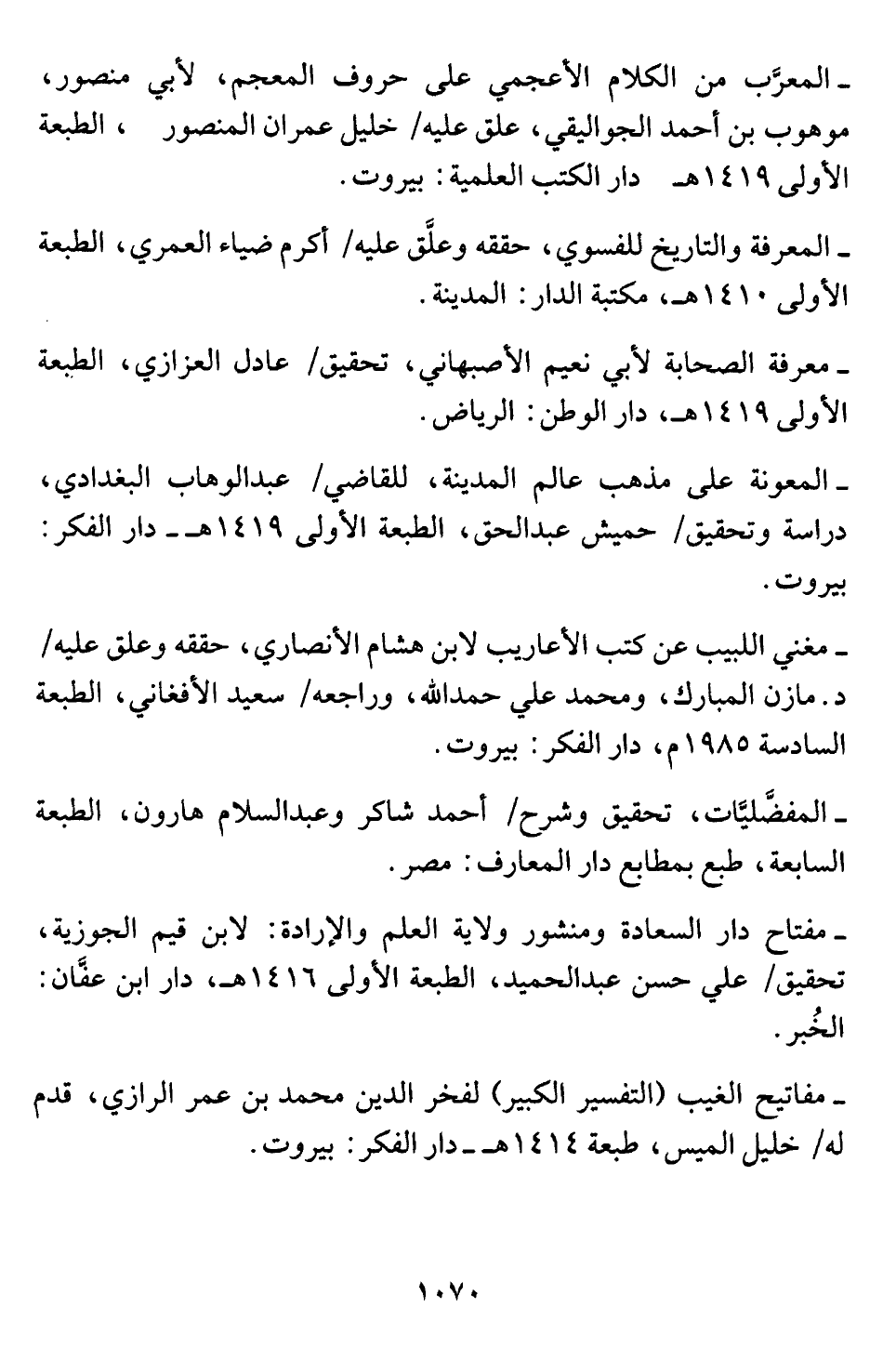 - مفتاح دار السعادة ومنشور ولاية العلم والإرادة: لابن قيم الجوزية، تحقيق/ علي حسن عبد الحميد، الطبعة الأولى ١٤١٦ هـ، دار ابن عفَّان: الخُبر.