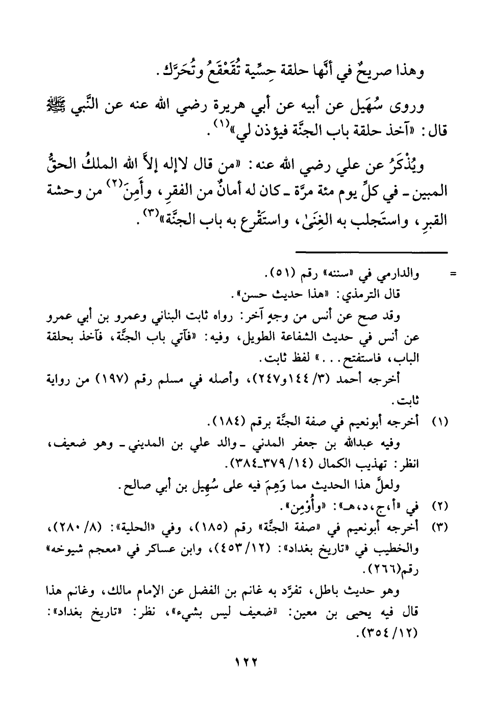 (¬٣) أخرجه أبو نعيم في "صفة الجنَّة" رقم (١٨٥)، وفي "الحلية": (٨/ ٢٨٠)، والخطيب في "تاريخ بغداد": (١٢/ ٤٥٣)، وابن عساكر في "معجم شيوخه" رقم (٢٦٦).