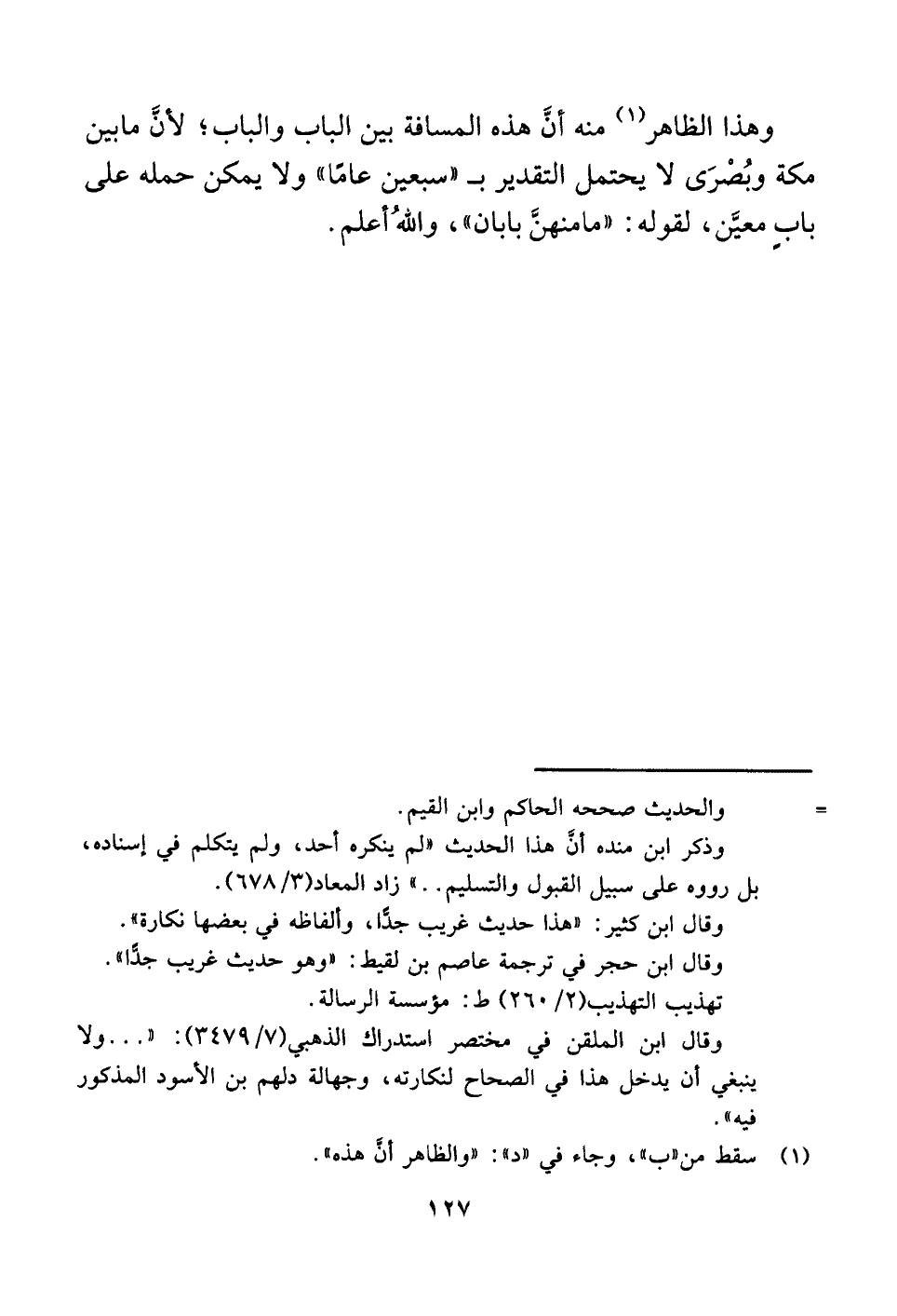 وذكر ابن منده أنَّ هذا الحديث "لم ينكره أحد، ولم يتكلم في إسناده، بل رووه على سبيل القبول والتسليم. . " زاد المعاد (٣/ ٦٧٨).
