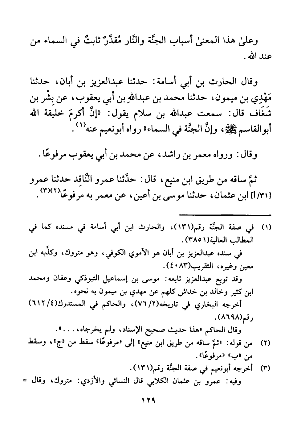 (¬١) في صفة الجنَّة رقم (١٣١)، والحارث ابن أبي أسامة في مسنده كما في المطالب العالية (٣٨٥١).