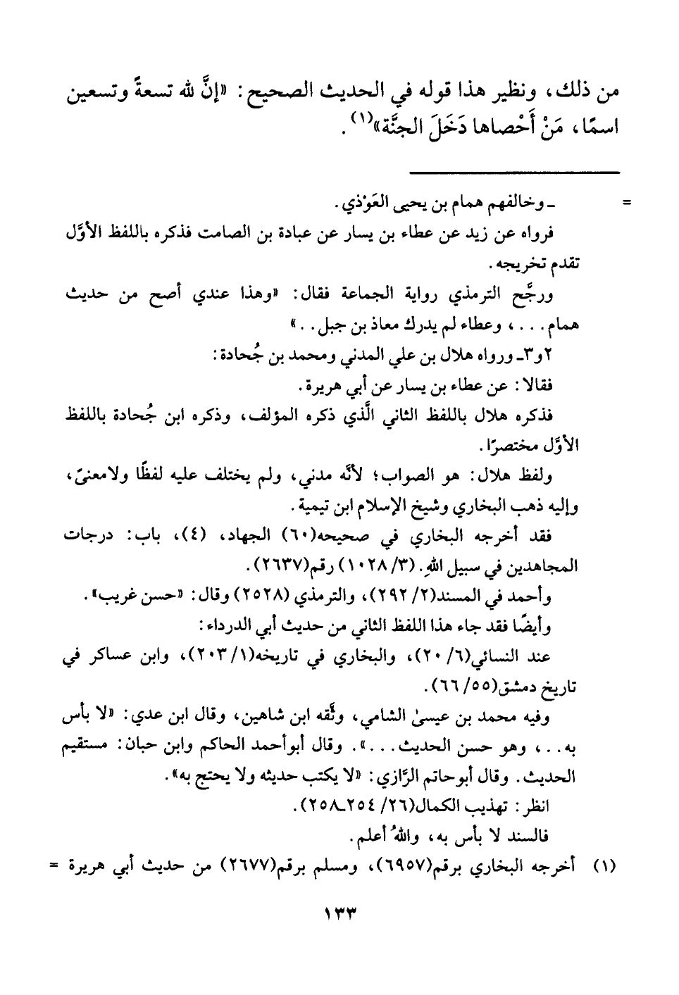 من ذلك، ونظير هذا قوله في الحديث الصحيح: "إنَّ للَّه تسعةً وتسعين اسمًا، مَنْ أَحْصاها دَخَلَ الجنَّة" (¬١) .