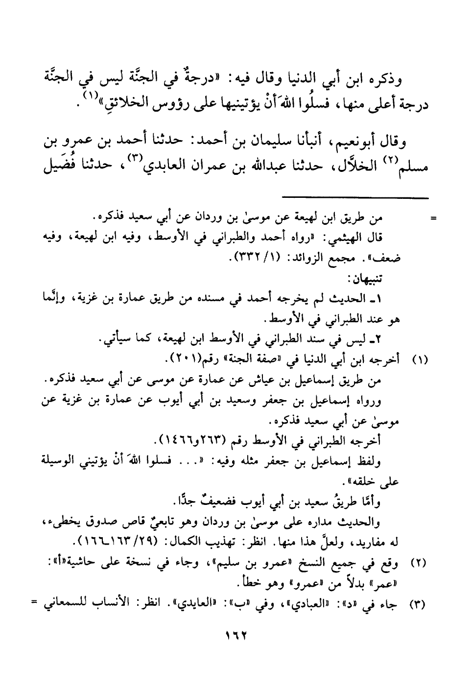 وذكره ابن أبي الدنيا وقال فيه: "درجةٌ في الجنَّة ليس في الجنَّة درجة أعلى منها، فسلُوا اللَّهَ أنْ يؤتينيها على رؤوس الخلائقِ" (¬١) .