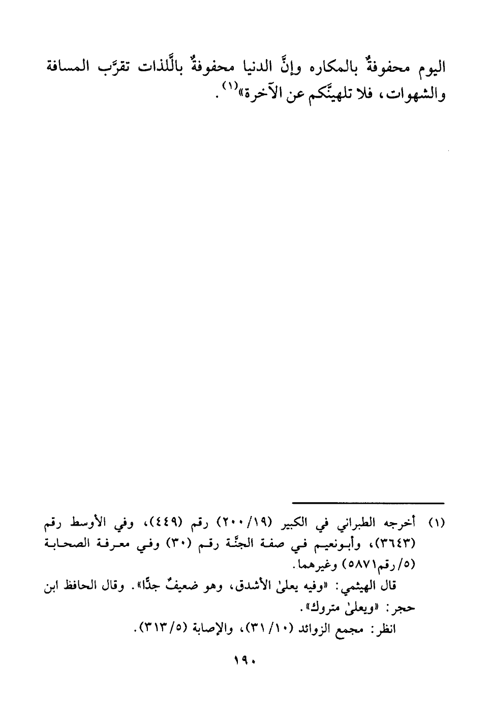 اليوم محفوفةٌ بالمكاره وإنَّ الدنيا محفوفةٌ بالَّلذات تقرَّب المسافة والشهوات، فلا تلهينَّكم عن الآخرة" (¬١) .