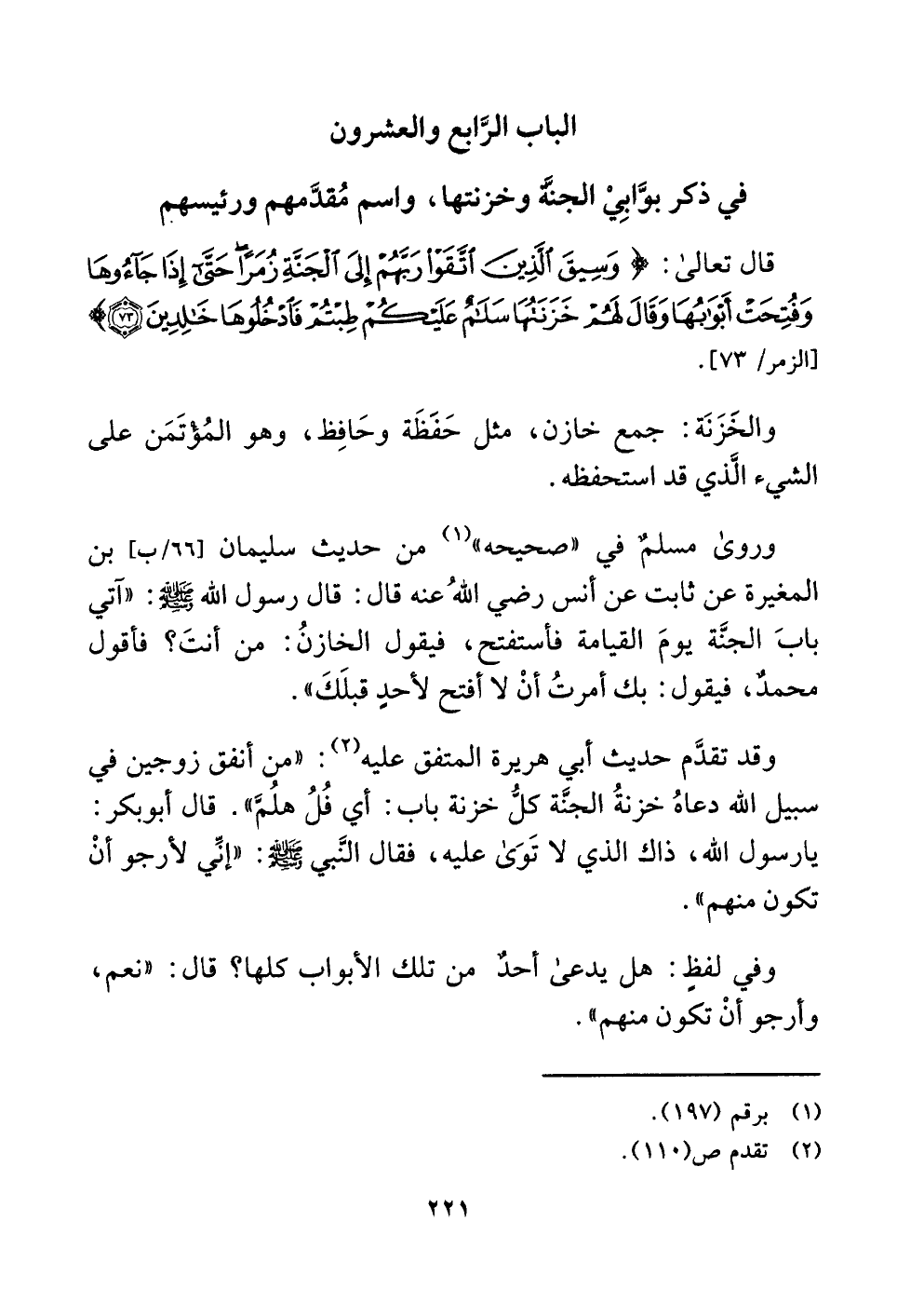 الباب الرَّابع والعشرون في ذكر بوَّابِيْ الجنَّة وخزنتها، واسم مُقدَّمهم ورئيسهم